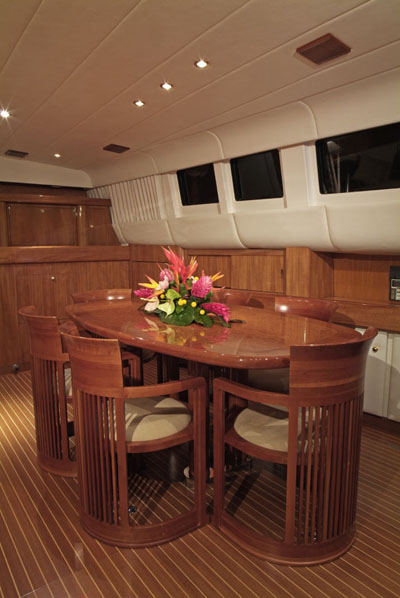 C’EST LA VIE is well built in France by CIM and well designed by the famous Sparkman & Stephens design team. She benefited from a refit in 2006/2007 and received a new bar in the salon, new inside and outside furniture, a new salon table and sofa. New wall upholstery, mirrors, lighting, new wood throughout. New curtains throughout. New Genset. New Plasma TV screens, entertainment systems and communication systems. New tender and water sports equipment.