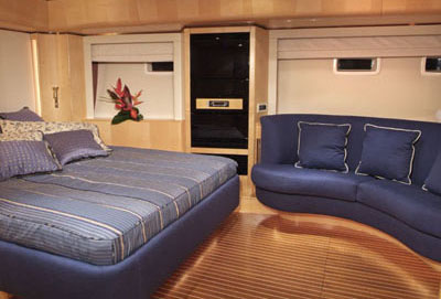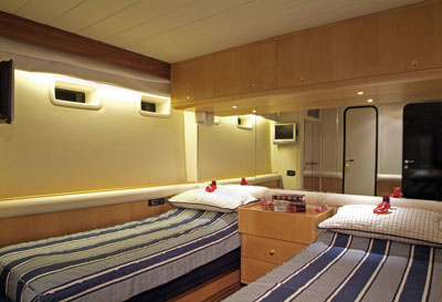 The master cabin has a queen size bed, ensuite bathroom with shower. Two additional cabins with convertible beds, both cabins can be double size beds or converted into two single beds, both ensuite with showers.