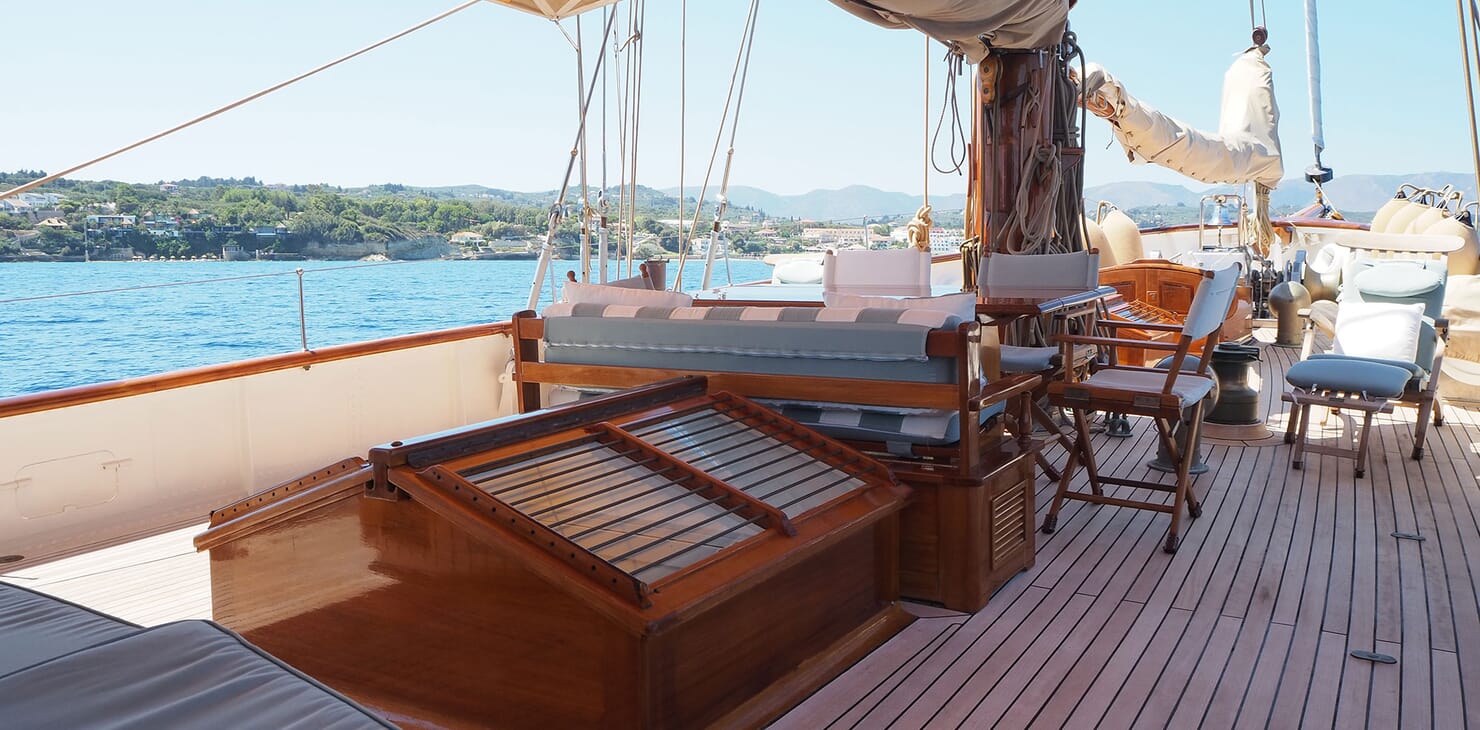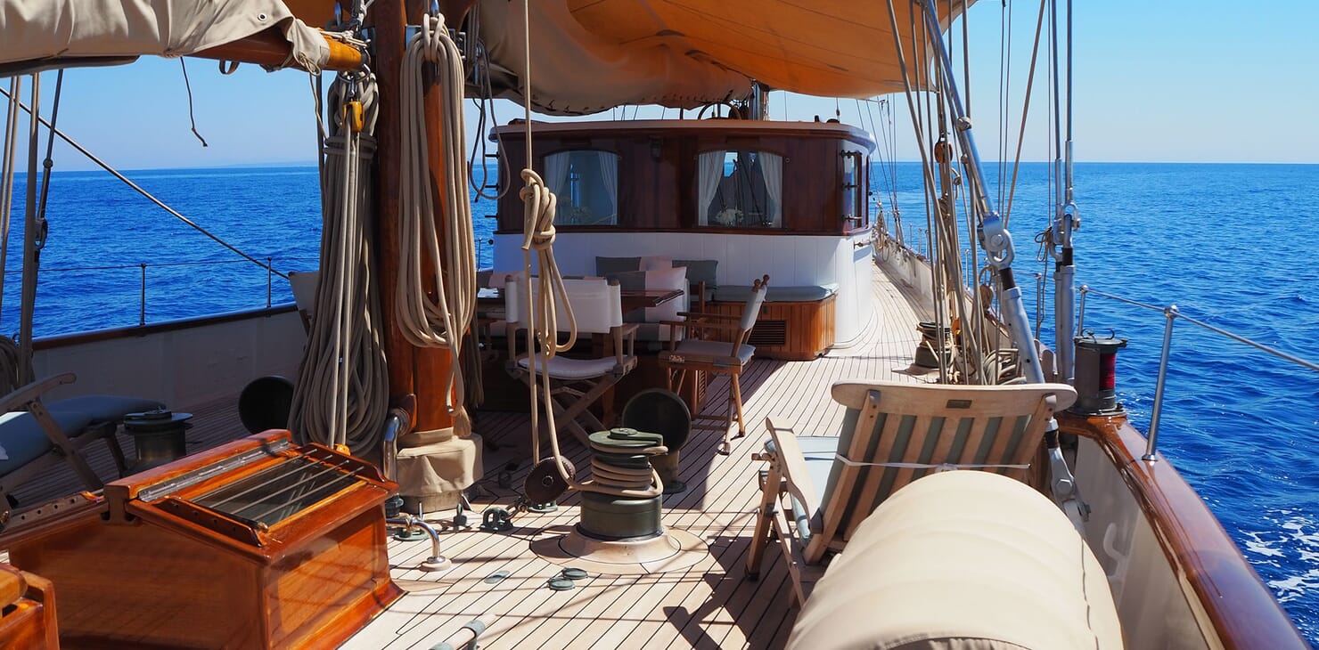 IDUNA (ex Highland Prince) is a 39m classic sailing yacht, built in 1939 by Dutch yard Feadship – one of the first yachts ever built by the now renowned shipyard. In 1999 and 2003 she underwent extensive refits, where the original craftsmanship was preserved as much as possible. Thanks to this, she retains the wonderful classic feel of a ‘golden age’ yacht, while also offering all the modern amenities guests could expect. She features multiple lounge areas, plenty of deck space, and accommodation for 6 guests over 3 cabins