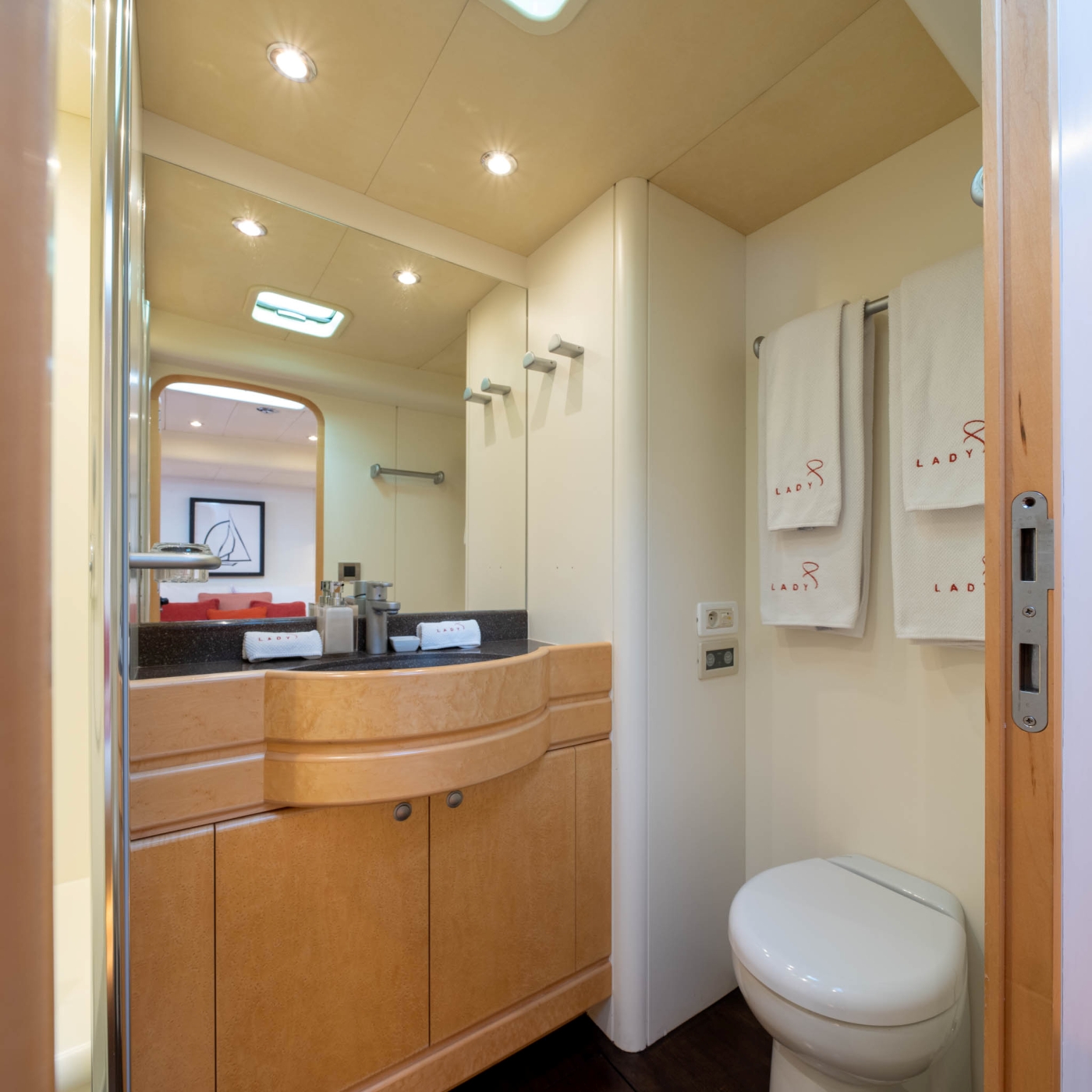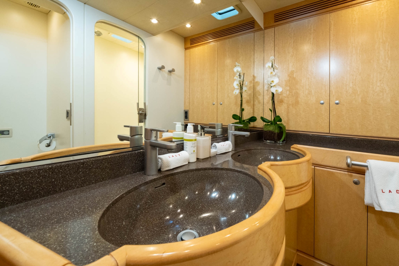 LADY 8 offers a luxurious and spacious interior for 6 guests in 4 beautifully appointed cabins. Two cabins offer double beds. One cabin with a double bed that can be converted into twin beds. One twin cabin. All cabins have en suite facilities and audio/visual entertainment.