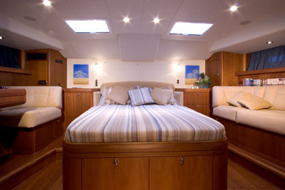 With a rich teak interior and amber alcantara her main saloon invites comfort and style. Kealoha’s two double cabins aft have been fitted out with a TV, thereby allowing guests their own DVD from the main system or to listen to music on their iPod with the yachts iPod interface. Her cabins are spacious and have maximum storage and closet space.