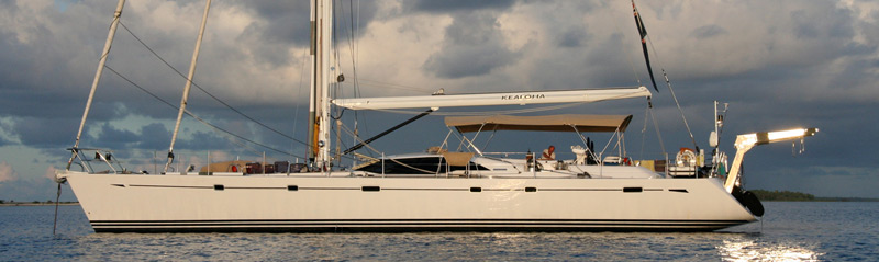 Tenders + toys: Dinghy: RIB / 13ft 6in (4m) / 50HP Sailing and water sports will be fully entertaining aboard Kealoha with a large inventory of water skis, wake boards, towing ring and snorkel gear. Cockpit bimini Fishing equipment Swim platform Diving by arrangement / rendezvous Communications sattelite and mobile phones SATCOM Internet and e-mail Fax machine Audio Visual Equipment and Deck Facilities DVD player / library Stereo system Local television 30