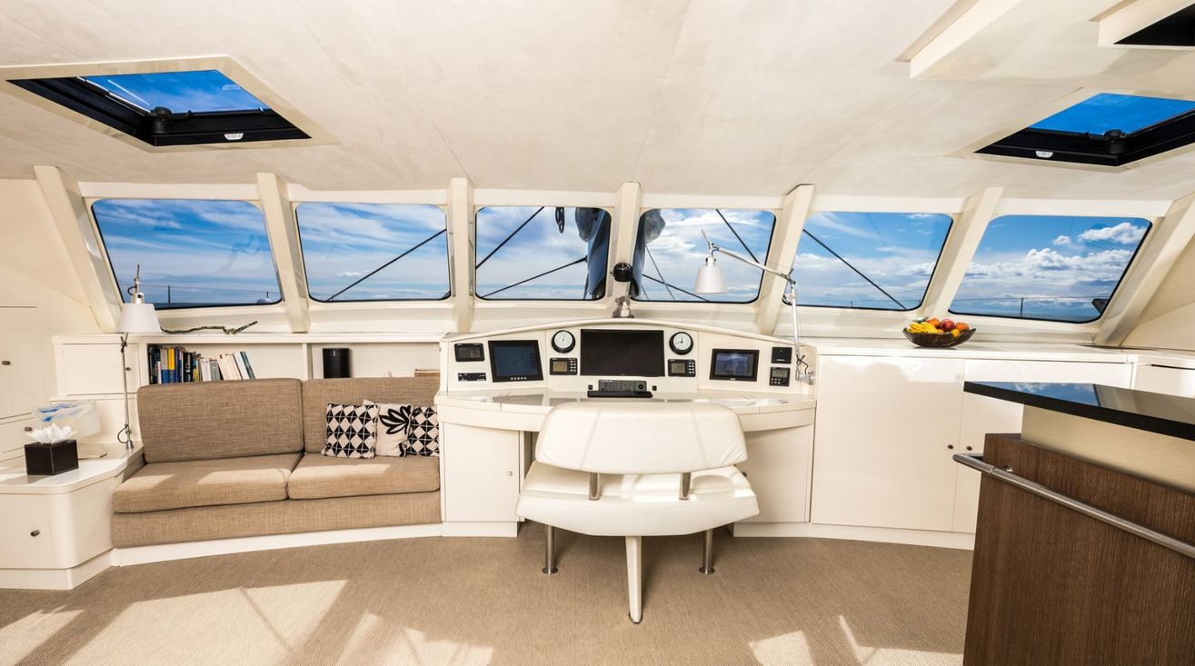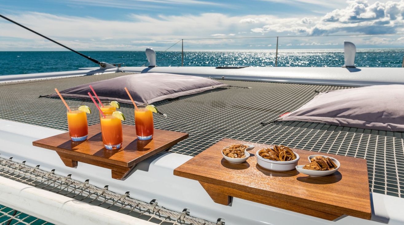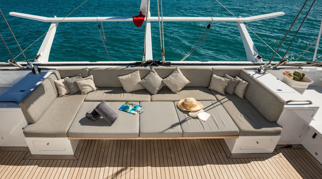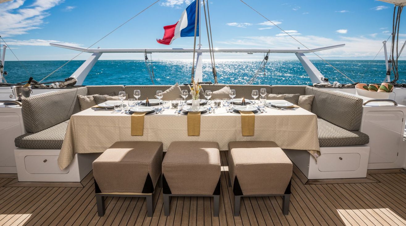 What is striking about MAGIC CAT is the space that she offers inside and out. With an large nacelle of 50m² and a panoramic cockpit of 25m², guests can relax in comfort and privacy. Her salon is equipped with a marble topped kitchen / bar and a generous seating area, whilst dining takes place under the cockpit canopy. 4 double en-suite staterooms accommodate 8 guests in simple luxury, whilst MAGIC CAT's crew of 4 ensure they are as comfortable as possible.