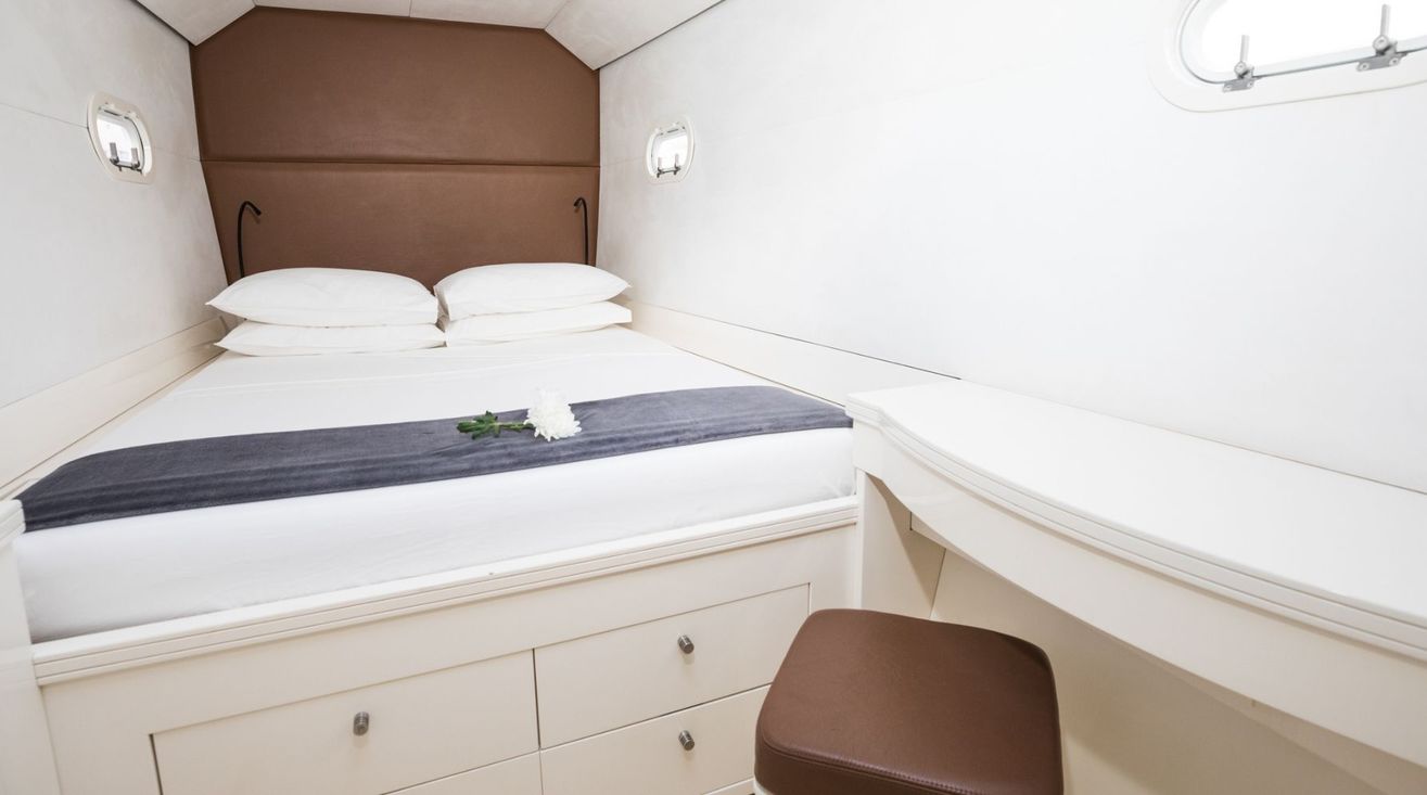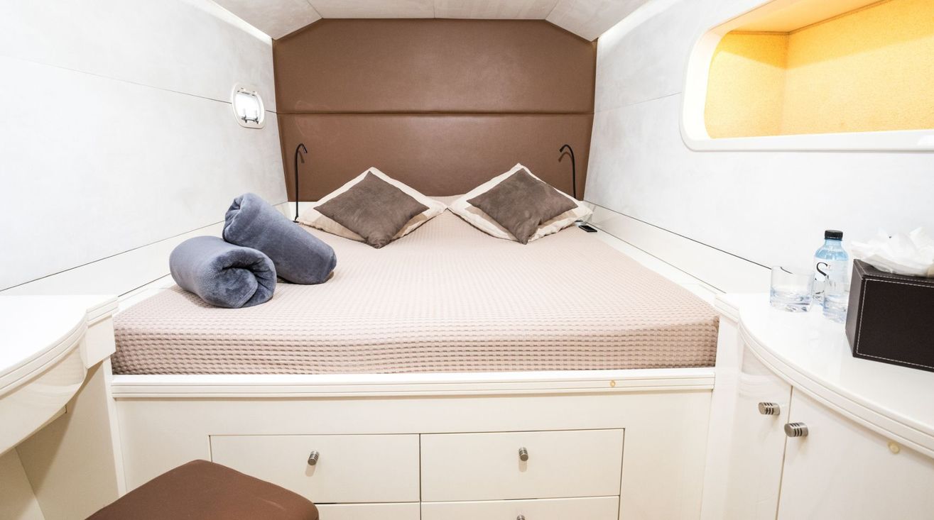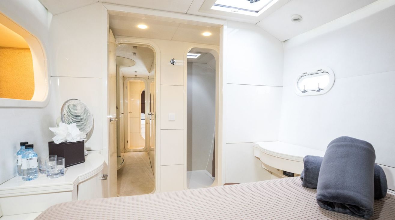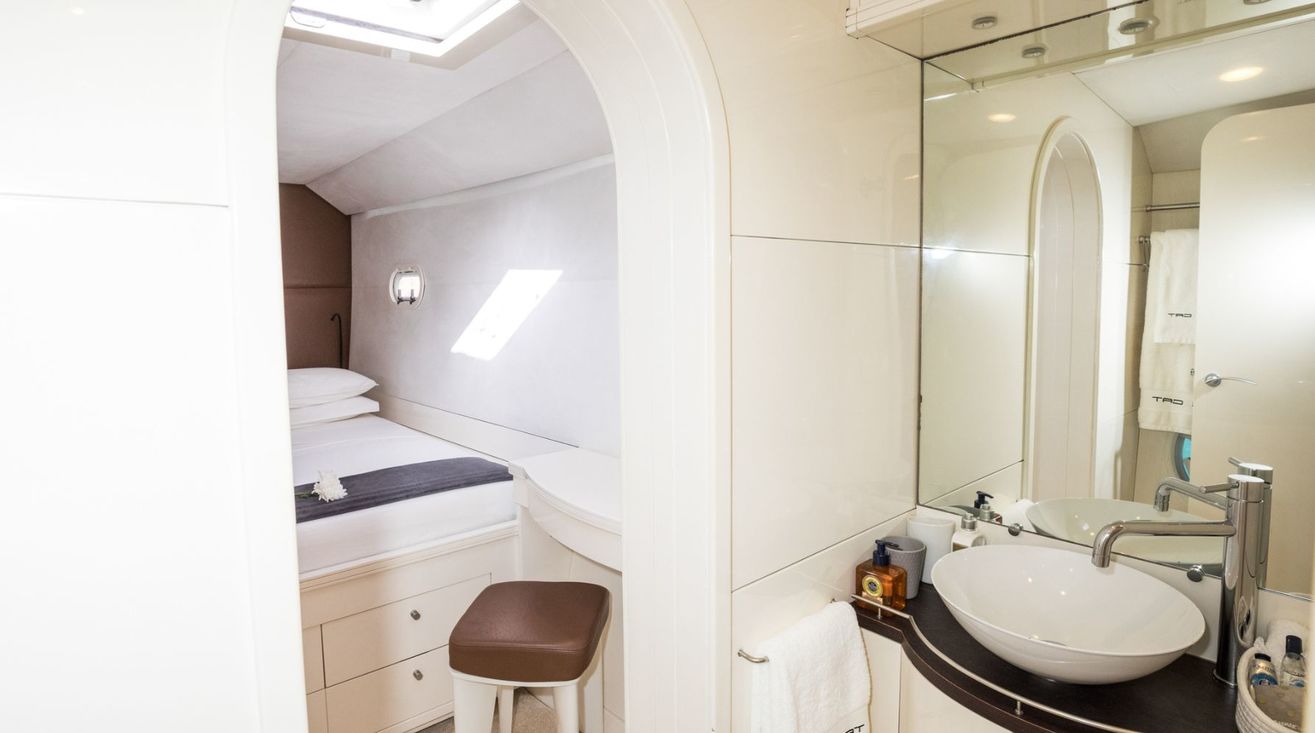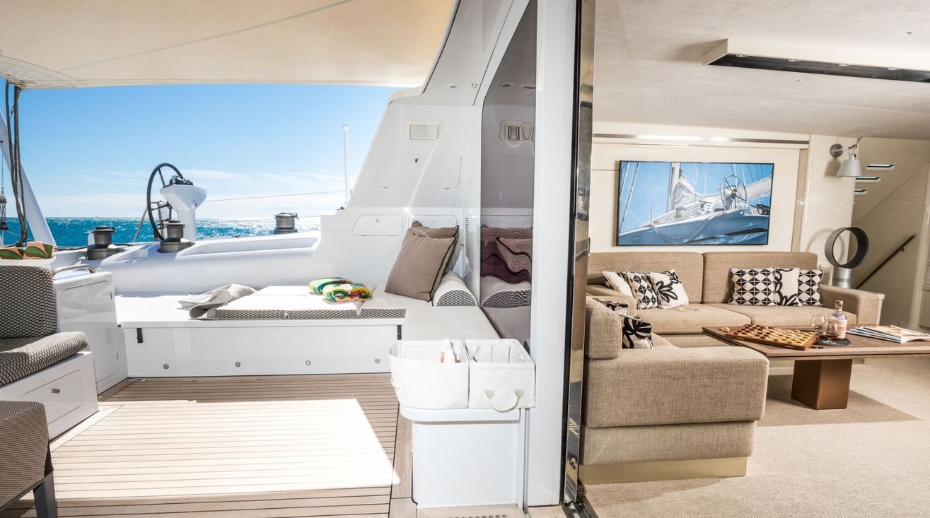 What is striking about MAGIC CAT is the space that she offers inside and out. With an large nacelle of 50m² and a panoramic cockpit of 25m², guests can relax in comfort and privacy. Her salon is equipped with a marble topped kitchen / bar and a generous seating area, whilst dining takes place under the cockpit canopy. 4 double en-suite staterooms accommodate 8 guests in simple luxury, whilst MAGIC CAT's crew of 4 ensure they are as comfortable as possible.