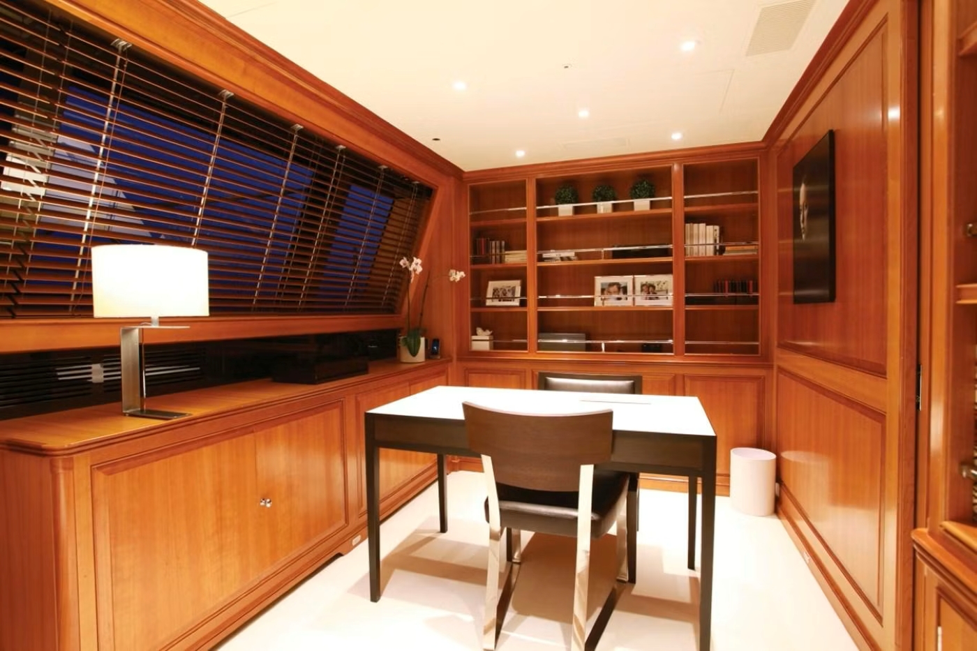 Sailing yacht PERSEUS has a main deck that centers on a broad saloon surrounded by large windows, an enclosed dining room and adjoining pantry, plus a separate library. The pilothouse which is located forward is the indoor control center for the twin-engine propulsion and the latest Perini Navi automated sail handling.