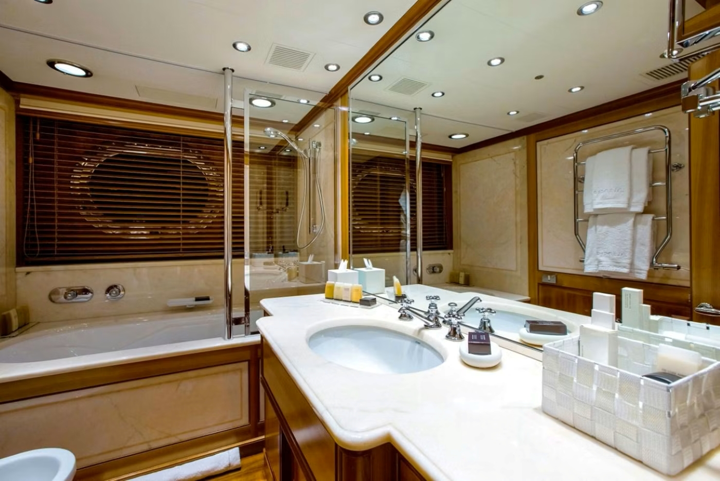 Notable Features: Stylish yacht ~ Versatile accommodation ~ Array of water toys ~ Gym gear ~ Wi-Fi