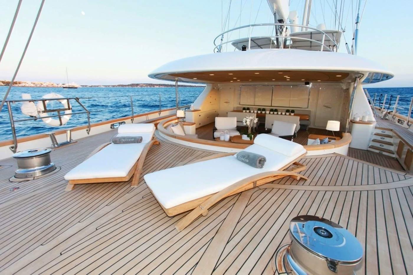 Perini Navi sail yacht PERSEUS was completely refitted in early 2012. During the refit she received a new interior refit and furniture by Christian Liaigre. She received a completely new and full installation of entertainment and new Navigation software. Her Full 10 years MCA ABS revision and Survey were also completed.