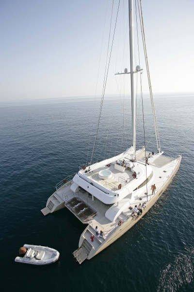 Luxury catamaran BLACK SWAN (ex RAFOLY) is a 92’ Blue Bay Sailing Yacht built by the French company Yachts Industries. Being a luxury sailing catamaran she offers superior entertaining space and on deck areas.