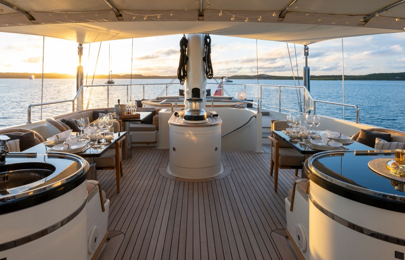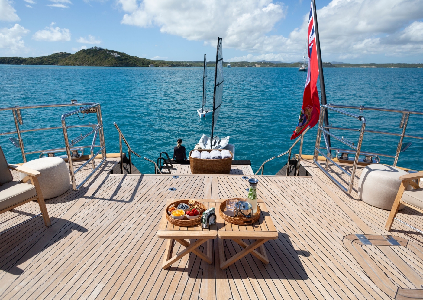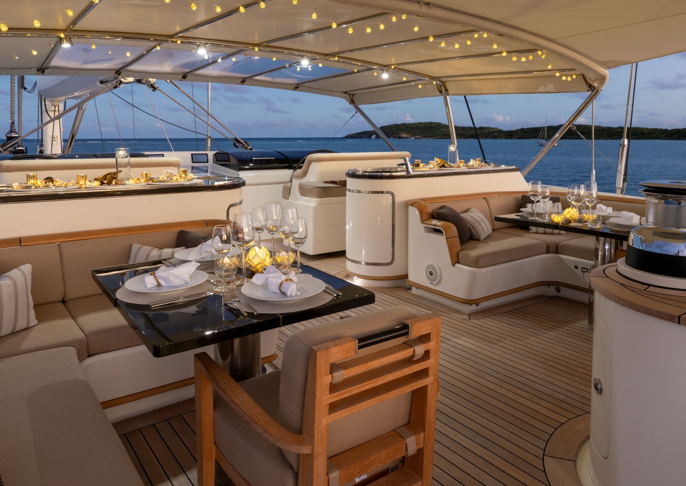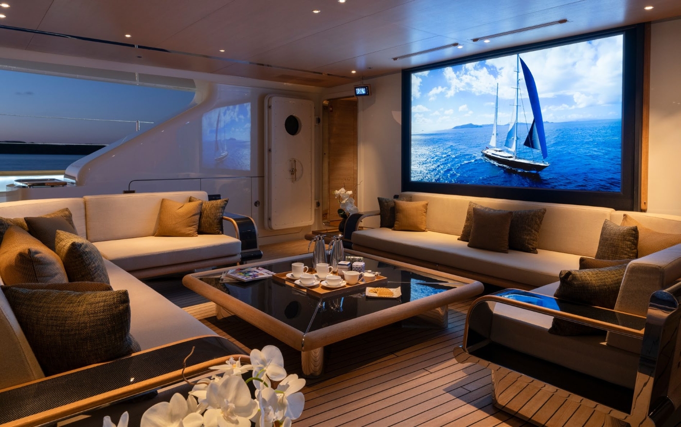 She has a large volume and an extensive sundeck/flybridge platform from which to survey the surroundings, entertain and sunbath.