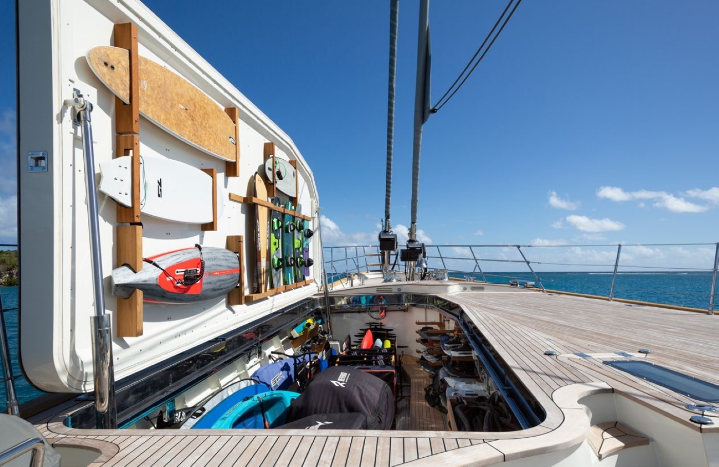 Sailing dinghy Gym/exercise equipment Fishing gear Efoil Drone Diving gear Bikes Yoga/Pilates equipment Canoes Chase boat Waterski children Waterski adult Wakeboard Towables Surfboard Snorkelling gear Kite-surf Paddleboard Tenders 1 x 19’ (6m) Zodiac with 60HP Yamaha outboard 1 x 41' (12.5m) Protector chase boat Toys - Windsports: 1 x SAB Foil board 4 x Slingshot Wing Craft Kite boards V1/V2/Miss fit/Luna V1 JP Foil slate 3 x Kitesurf 8/10/12 Slingshot SST 6 x Slingshot Slingwing V3 2,5/3/3,5/4/5/6,5 1 x Slingshot Javlin v1 5m 1 x GA Windsurf sail and mast 4,4m 1 x STX Windsurfer Sail 3,2m 1 x STX Windsurfer Sail 1,8m - Wake and surf: 1 x Slingshot wakeboard 1 x Liquidforce wakeboard 1 x Liquidforce wakeskate 1 x Liquidforce wakesurf 1 x Big easy wake surf 1 x Hyperlyte wake surf 1 x Soft tec surfboard 1 x 7S fish Surfboard 1 x ESP mini mal 1 x Jp Surf sup 2 x Wake ski set (one large and one small set) 1 x Mono ski - Water toys and inflatables: 1 x Sea bike 1 x Inflatable pontoon (yacht beach) 5mx2m 1 x Inflatable trampoline 1 x Rock it junior 1 x Banana for 3 persons 1 x Biscuit 2 x Reverso sailing dinghy 2 x Seabob 1 x Flite Board Pro 1 x Flite Board Ultra 1 x Flite Board Air 1 x 1-person kayak 1 x Schiller bike with detachable forward platform 2 x Husqvarna MC7 E Mountain Bikes with Ergometer stands for onboard training Spear fishing equipment Diving equipment for 4 guests Snorkeling equipment for 12 guests Tender diesel fueling station @ shell door