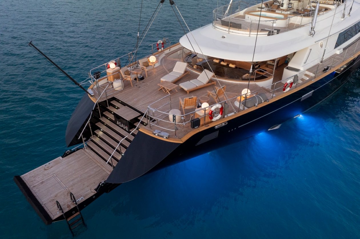 The luxury yacht ASAHI displayed on this page is merely informational and she is not necessarily available for yacht charter or for sale, nor is she represented or marketed in anyway by CharterWorld. This web page and the superyacht information contained herein is not contractual. All yacht specifications and informations are displayed in good faith but CharterWorld does not warrant or assume any legal liability or responsibility for the current accuracy, completeness, validity, or usefulness of any superyacht information and/or images displayed. All boat information is subject to change without prior notice and may not be current.