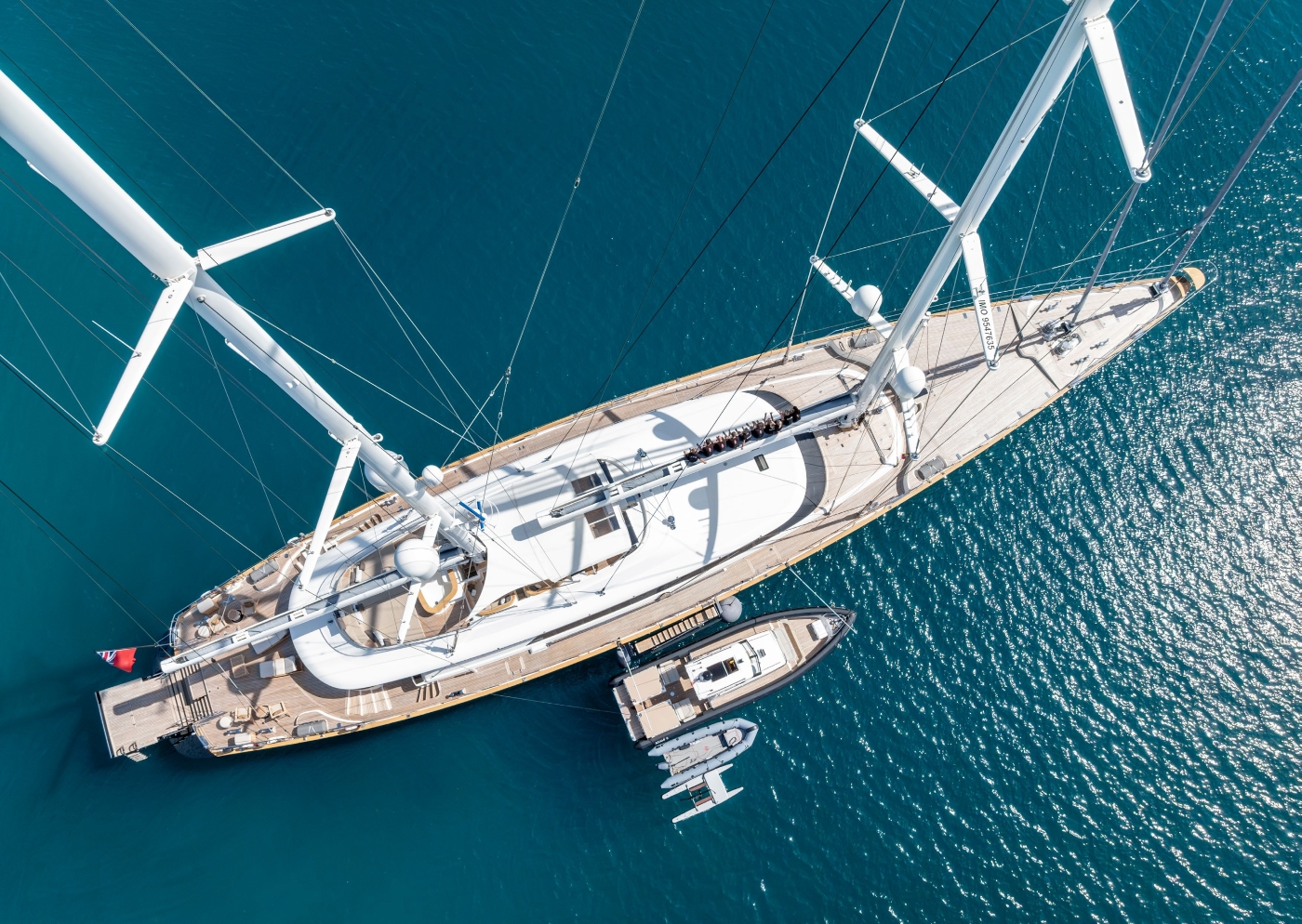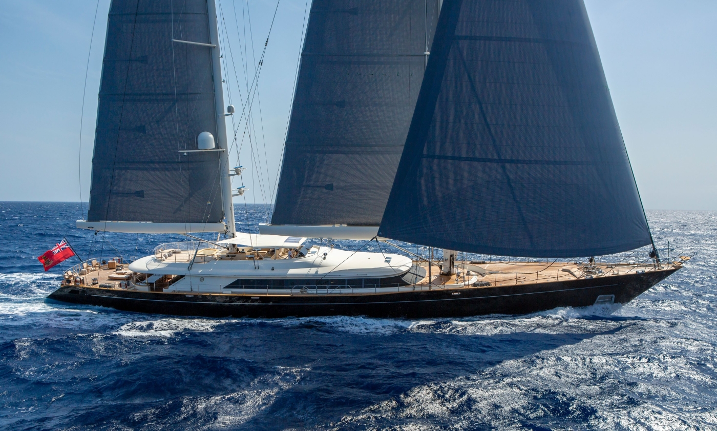 The superyacht’s masts are 58.8m (mainmast) and 48.26m (mizzen) tall. They are constructed from aluminum, while the automatic furling boom is made from carbon fiber. Her total sail area is around 1,500 m².