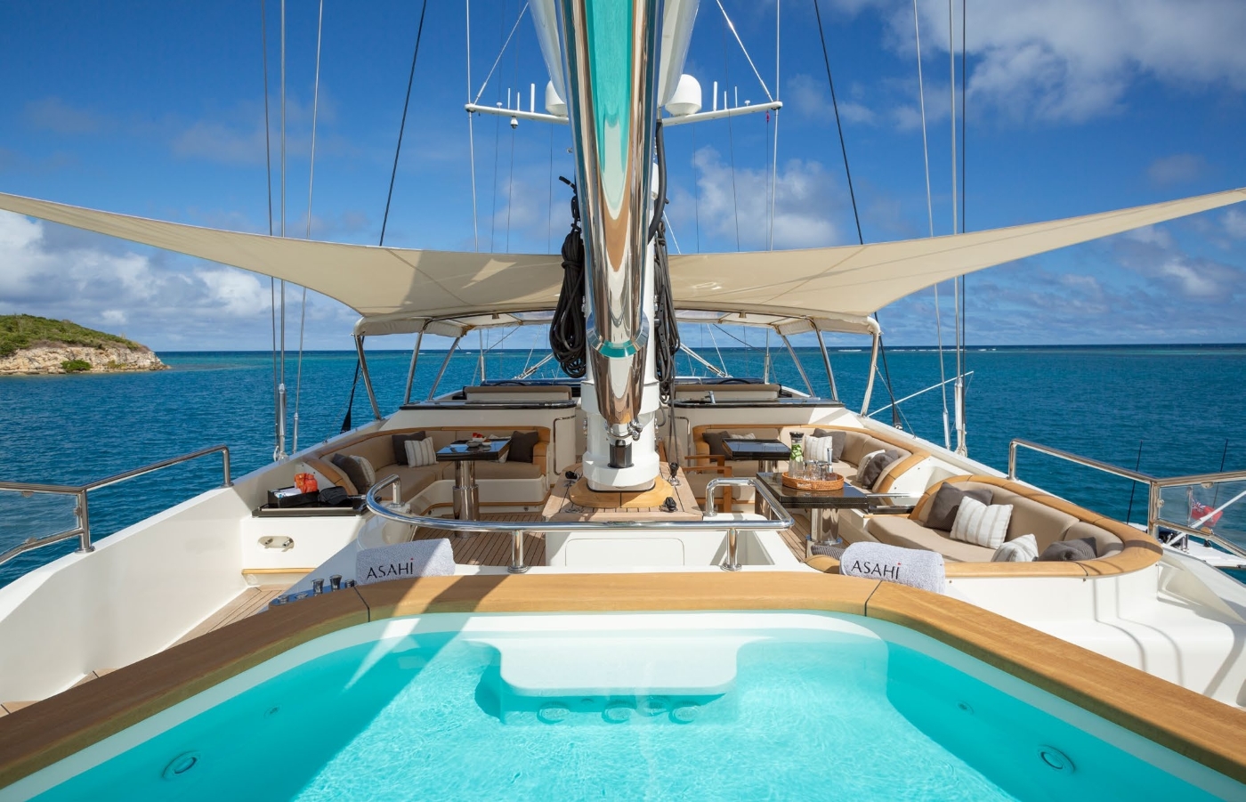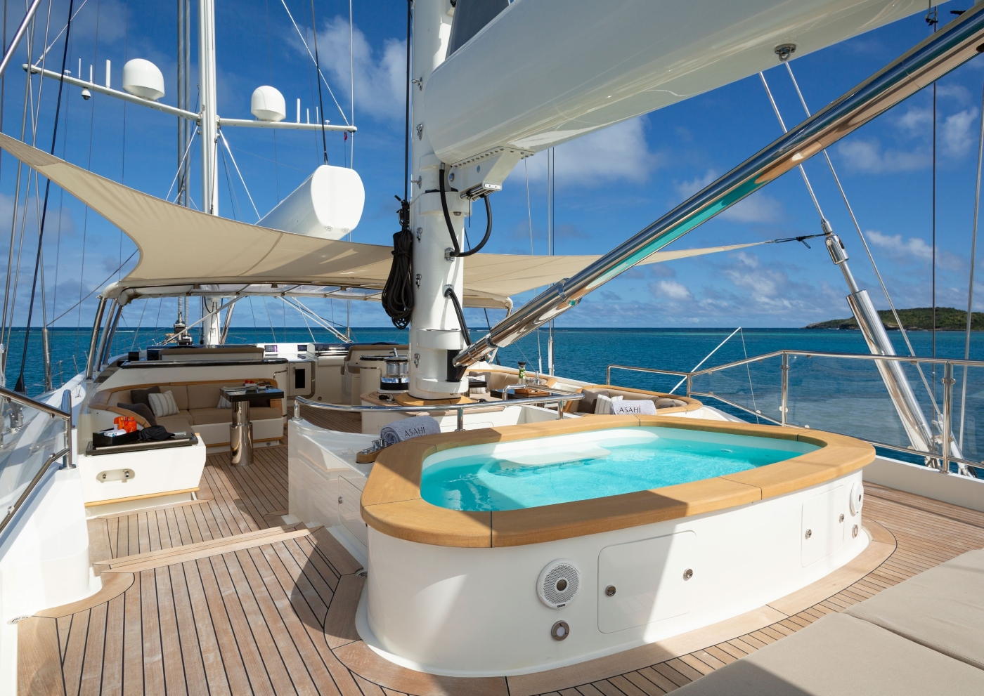 Providing both excellent sailing performance and delightful comfort sailing yacht ASAHI has size, style, functionality and performance. She is able to accommodate up to 12 people in 3 double and 3 twins, fully ensuite cabins. This includes a full beam owner’s suite with a king-sized bed, two VIP cabins with queen beds, two twin bed cabins and a further cabin with over and under bunks.