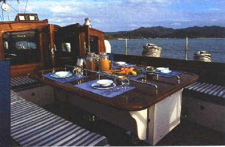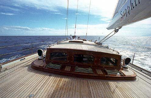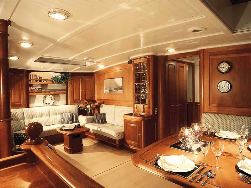 Sea Dragon embodies class, the dark blue hull gleams with elegance and sophistication, her graceful lines draw the eye and turn heads. She has a beam of 6.7m (22ft) and a draft of 3.m (11ft), she carries an impressive amount of canvas while under sail. When not being propelled naturally by winds, she is powered by a Deutz 368hp engine and can cruise easily at 8 knots.