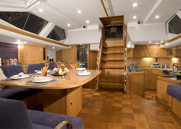 Her owners can relax and enjoy music from the LINN surround sound or enjoy a movie on the plasma screen t.v. Music can also be enjoyed in the cockpit whilst on deck. iPod connections are also available throughout the yacht.