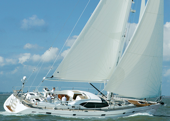 The yacht carries a generous 2830 sq ft of sail in 150% configuration giving a clear indication of the yacht's potential performance. Sailing performance is an important focus..."