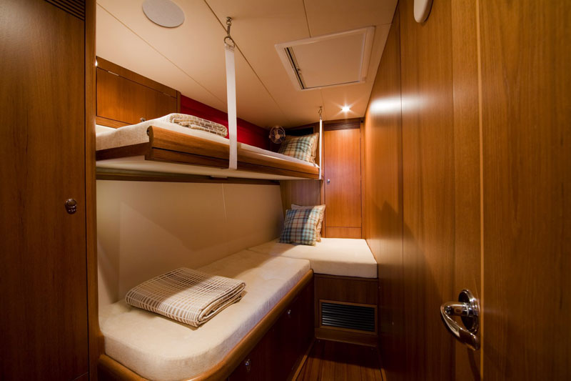 Solway Mist has a master cabin, aft, fitted out to the highest Oyster specification, a luxury double berth, a sea berth and vanity table and also has a flat screen television, with an en-suite shower and head.