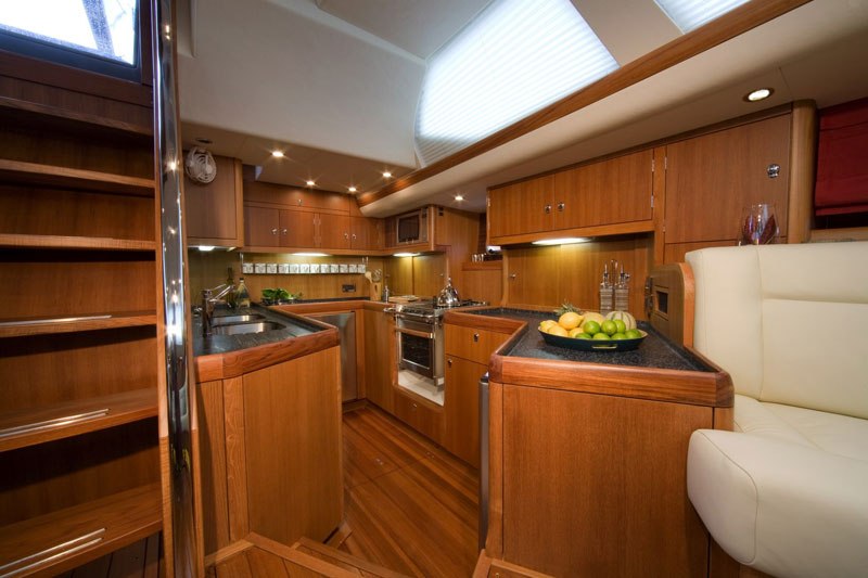 The 655 has clean undistorted hull lines and her long 57.9ft waterline combines with a generous 18.4 ft beam to create an easily driven hull.