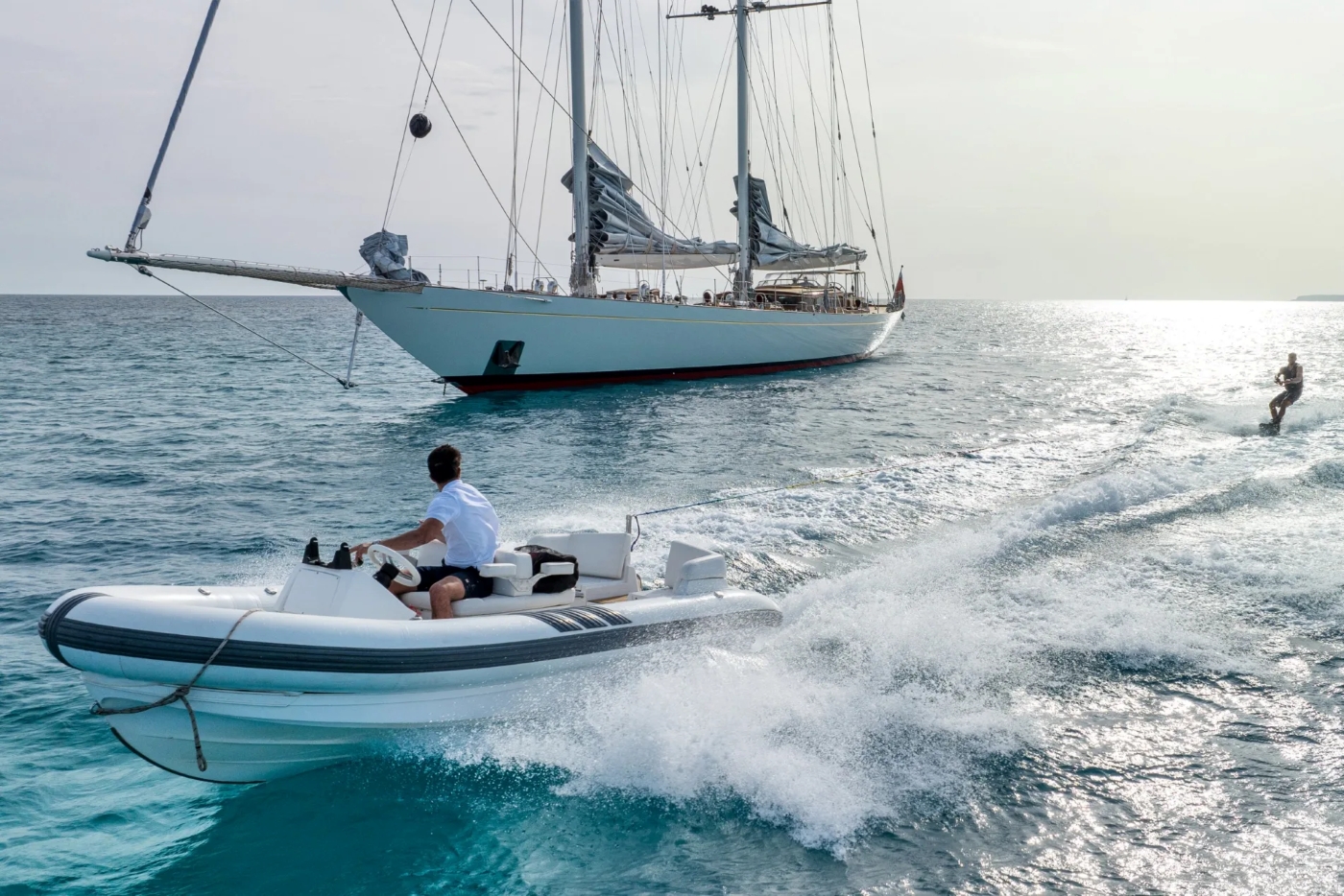 Tender + Toys ~1x Castoldi 15 RIB main tender (seats 7) with 110 Yanmar diesel waterjet. ~Fully expedition-equipped with Furuno navigation system, Sonar and VHF + satellite communication systems. ~1x DSB SOLAS inflatable (4.20m) with 25hp Yamaha outboard engine ~1x Wakeboard ~3x Paddleboards ~2x Yamaha 500 LI seascooter underwater ~1x Waterskis (regular model) ~1x Waterski (monoski) ~2x Kayak ~Full diving gear for 5 persons (12 litre 300 bar tanks, BCD’s + octopus). We also carry a limited amount of masks, fins ~Bauer 200/300 bar dive-compressor ~Large amount of generic snorkelling gear (masks + fins) ~Note: one crew member has a PADI Dive Master certification