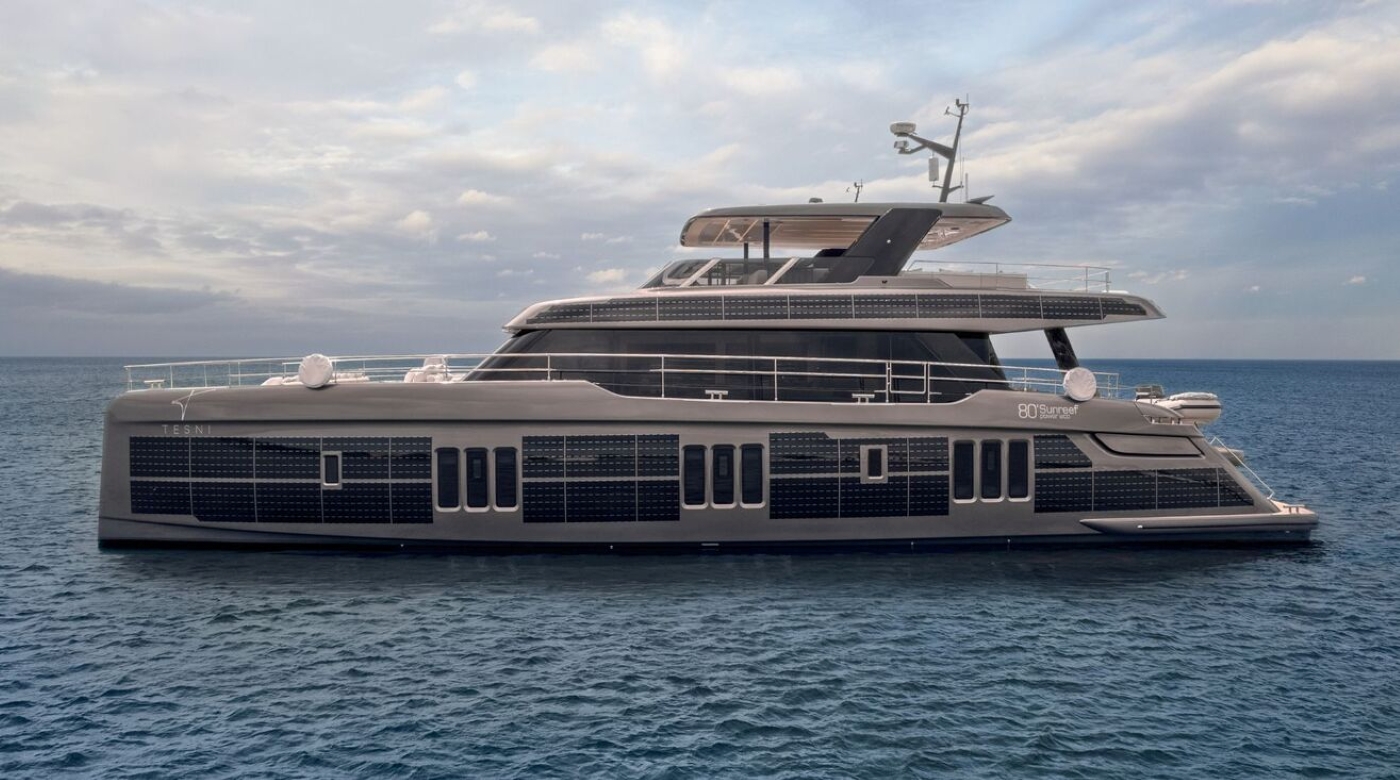 Delivered in 2025 by Sunreef Yachts, TESNI is a 23.95 m (78′ 7″) luxury power catamaran built with eco aware innovations and modern elegance. With naval architecture, exterior styling and interior design all handled in house by Sunreef, she offers a seamless blend of light, space and sustainability. TESNI accommodates up to 8 guests across 4 cabins, supported by a dedicated crew of 4. From her spacious decks and panoramic glazing to her solar assisted systems and deck jacuzzi, this yacht delivers refined comfort with a conscientious footprint.