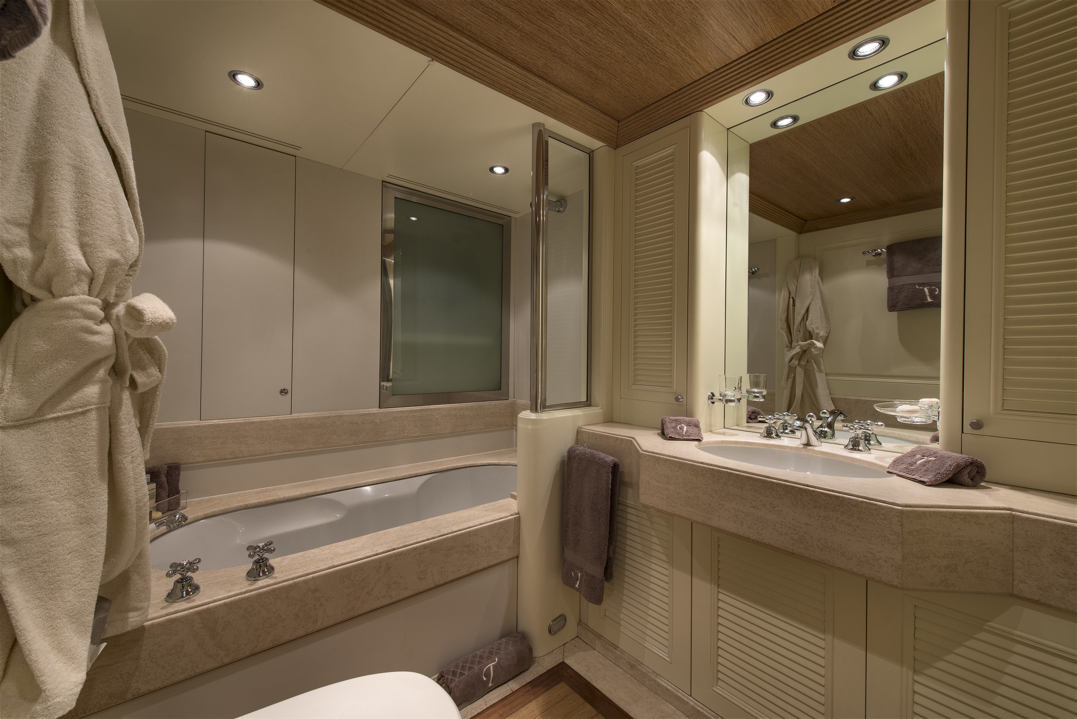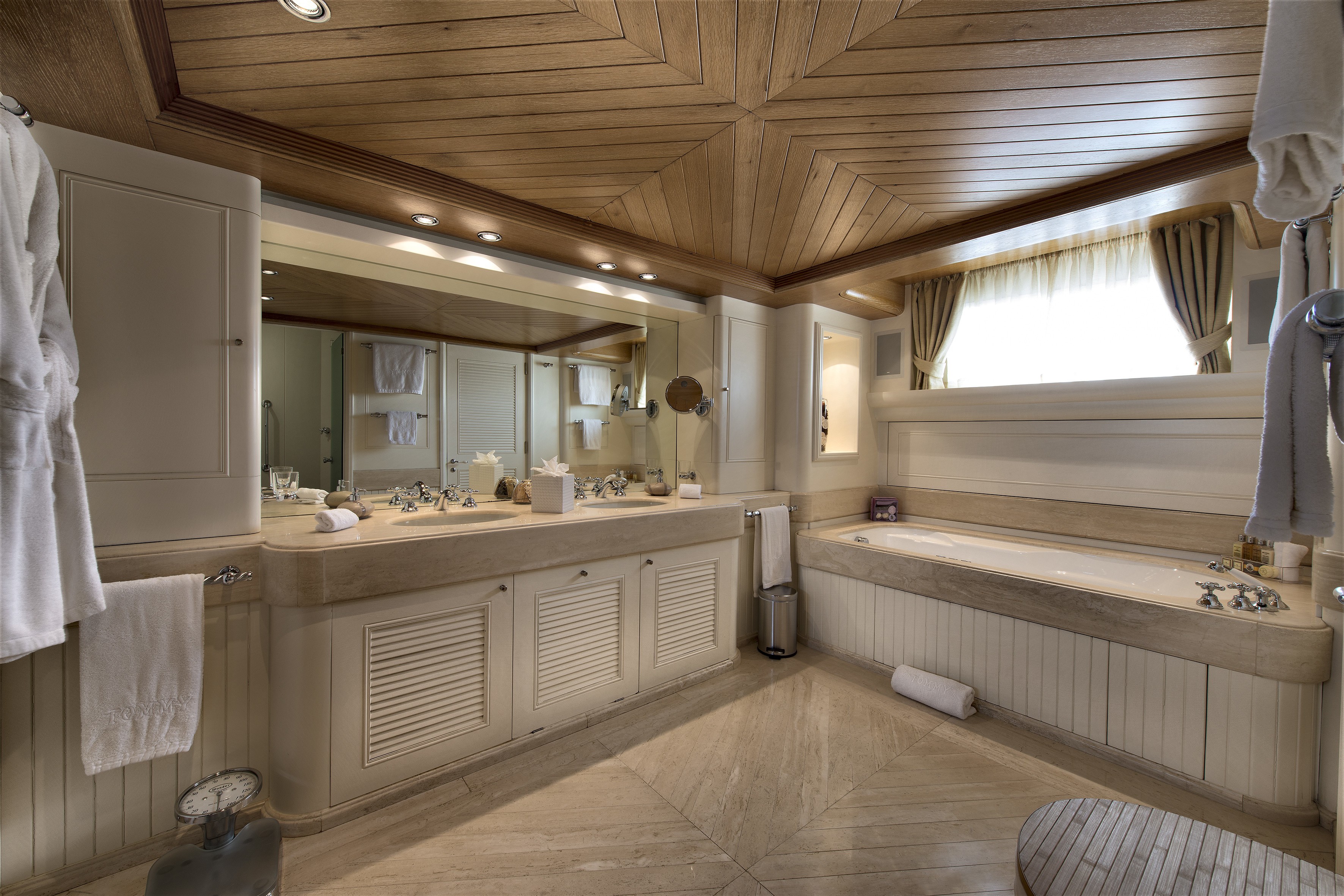 Powered by two DEUTZ-MWM diesel engines, TOMMY will reach a high speed of 20 knots. She is driven by twin screw propellers. She also has an efficient range of 4000 miles when sailing at her cruise speed of 18 knots. Her total HP is 6092 HP and her total Kilowatts are 3580. As for bow thruster maneuverability she was built with Hydromarine. As for the yacht’s stabalisers she uses Naiad.