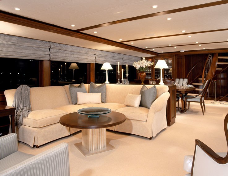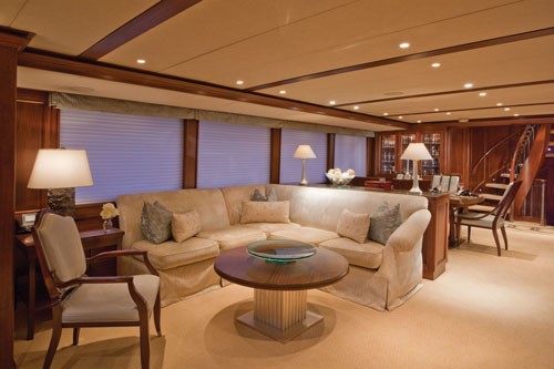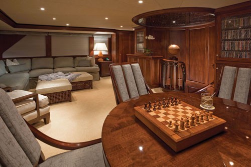 The Salon yacht's main saloon reflects classic and understated elegance. Whenever you’re onboard a Burger, the lineage is undeniable... just wonderful woodwork and a sense of comfort that Burger manages to capture and repeat with each vessel built. She also has an aft saloon which shows the attention to detail by the interior designer... the furnishings look as though they were carved from the same timber that dresses the rest of the room.