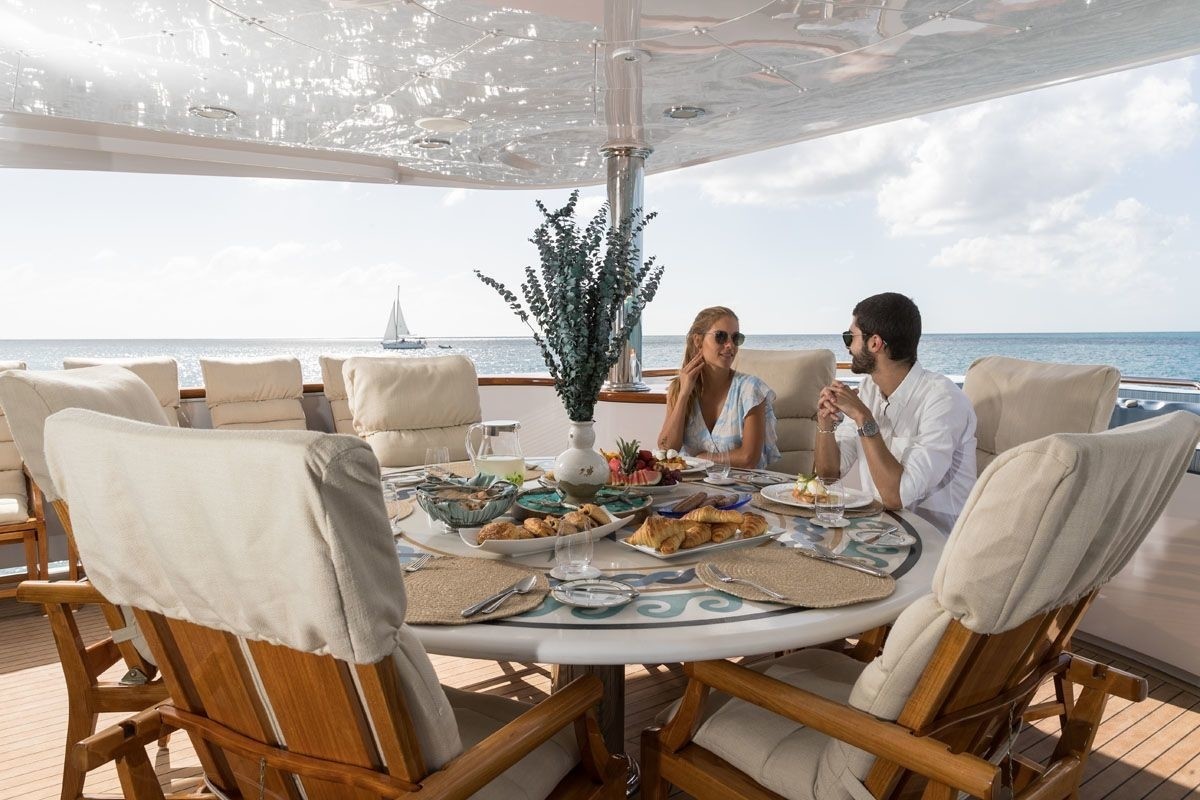 The well sized luxury yacht motor yacht TOUCH is able to sleep as many as 8 people and has 7 qualified crew.
