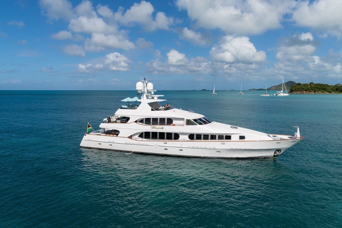This well sized luxury yacht TOUCH is a motor yacht. This 36 metre (119 ft) luxury yacht was created by Custom - Louisbourg nstruction in 2004. She is a recent full displacement yacht. Superyacht TOUCH is a majestic yacht that is able to accommodate a total of 8 guests on board and has approximately 7 qualified crew. Completed in the year of 2004 the comparatively recent interior design and decor demonstrates the insight of the design work of Danielle Vigneault (Creation Marine - Refit).