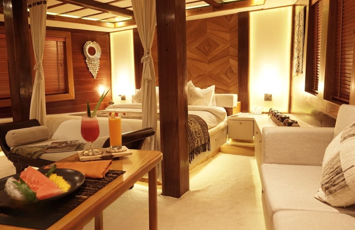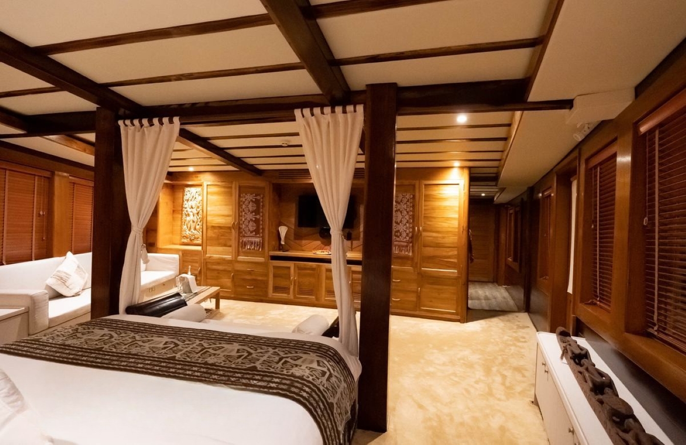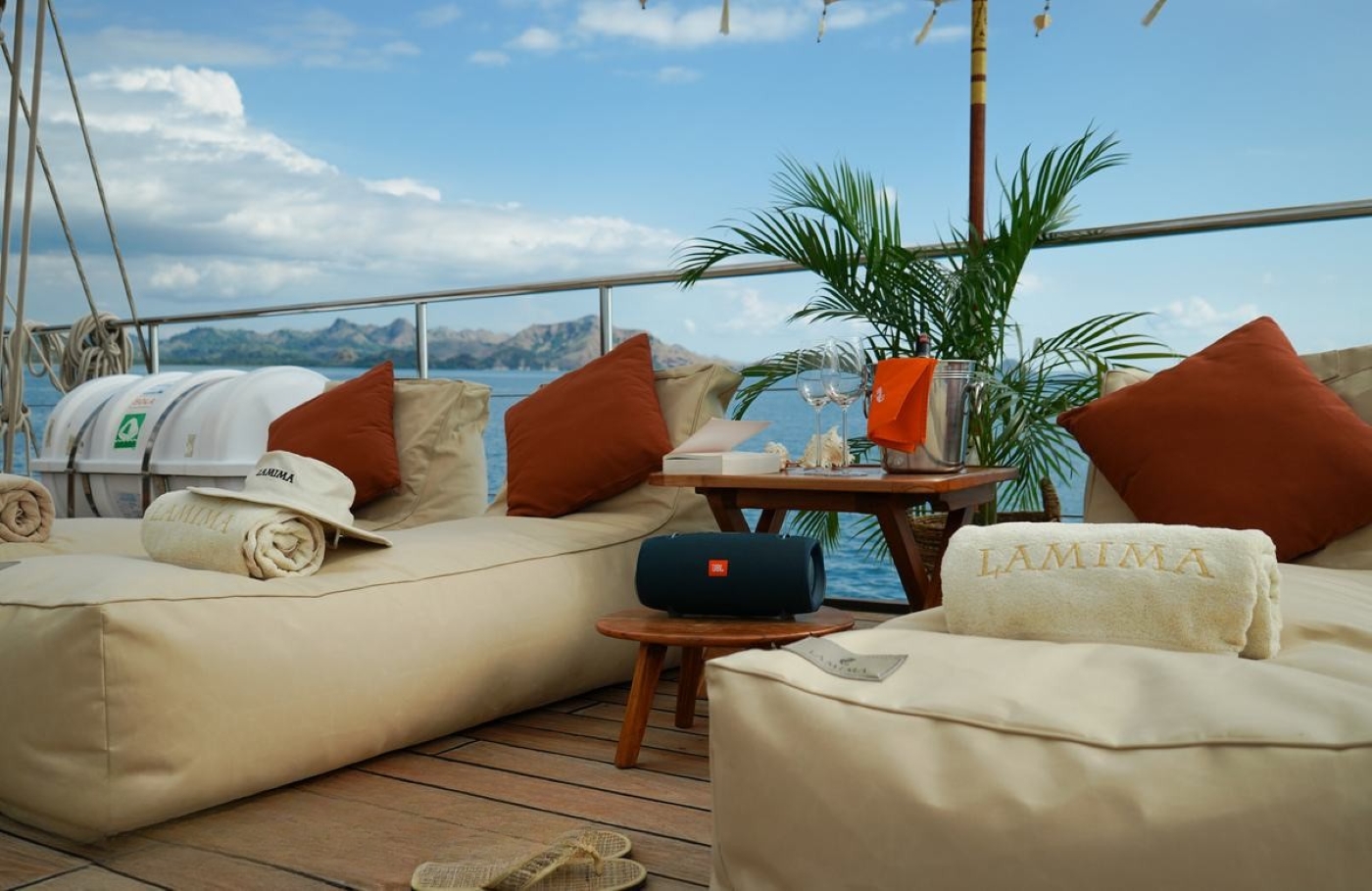 LAMIMA combines traditional Indonesian boat building techniques with modern design, luxurious amenities and supreme safety. She was designed by Spanish designer Marcello Pena from Barcelona, featuring warm and inviting style with the beautiful contemporary Asian influence. Everything aboard LAMIMA has been created with guest’s comfort and desires in mind.