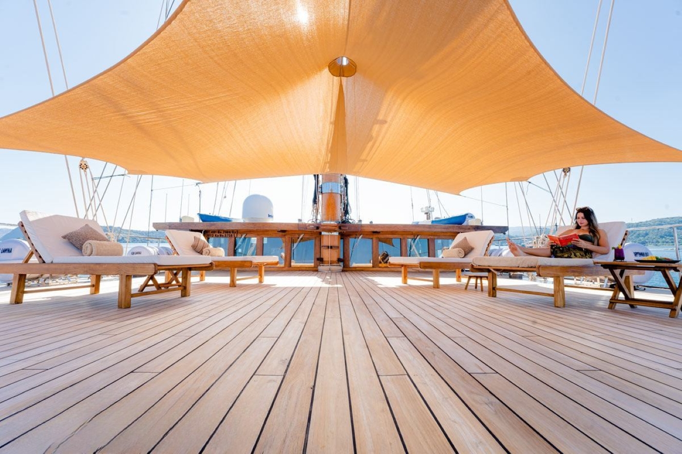 Thanks to her excellent design and layout, there is plenty of space for relaxation and socializing, including the main guest lounge, the daybeds or sun loungers.