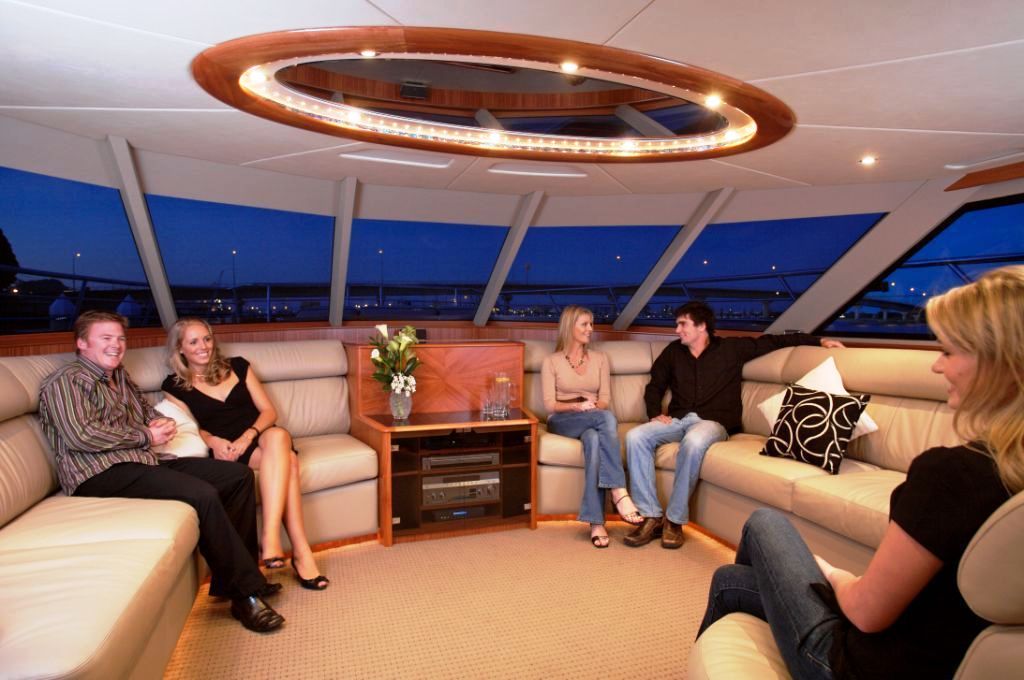 Motor Yacht ULTIMATE ESCAPE has overnight accommodation for six guests in three spacious cabins, each with ensuite bathrooms. The two main cabins have queen beds with the third cabin fitted with two single beds that can be converted to a queen. Each cabin is equipped with State-of-the-art audio visual equipment with surround- sound and an up to date DVD and CD library to choose from. Each cabin is also complimented with a range of luxury items including bathrobes, slippers, towels and boutique toiletries for guests' use. Laundry facilities are also available on board.