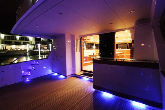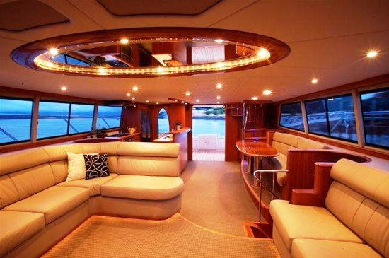 The spacious aft deck is most popular for al fresco dining and refreshments, with an integrated barbeque and outdoor bar. Inside, ULTIMATE ESCAPE is equally as functional and elegant with rich timber, hand crafted joinery, Paua inlay, fine leather seating and lush woollen carpeting.