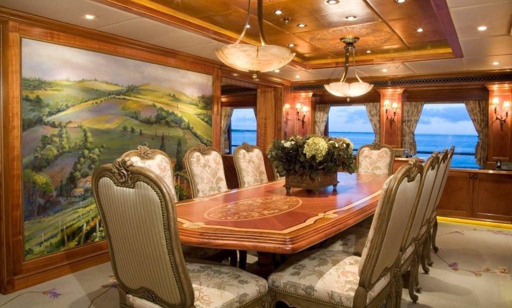 The 3512B engine powering the yacht is made by CATERPILLAR. Her propulsion units are twin screw propellers. The engine of the ship gives 2012 horse power (or 1501 kilowatts). She is fitted with 2 engines. The sum output for the yacht is therefore 4024 HP / 3002 KW.