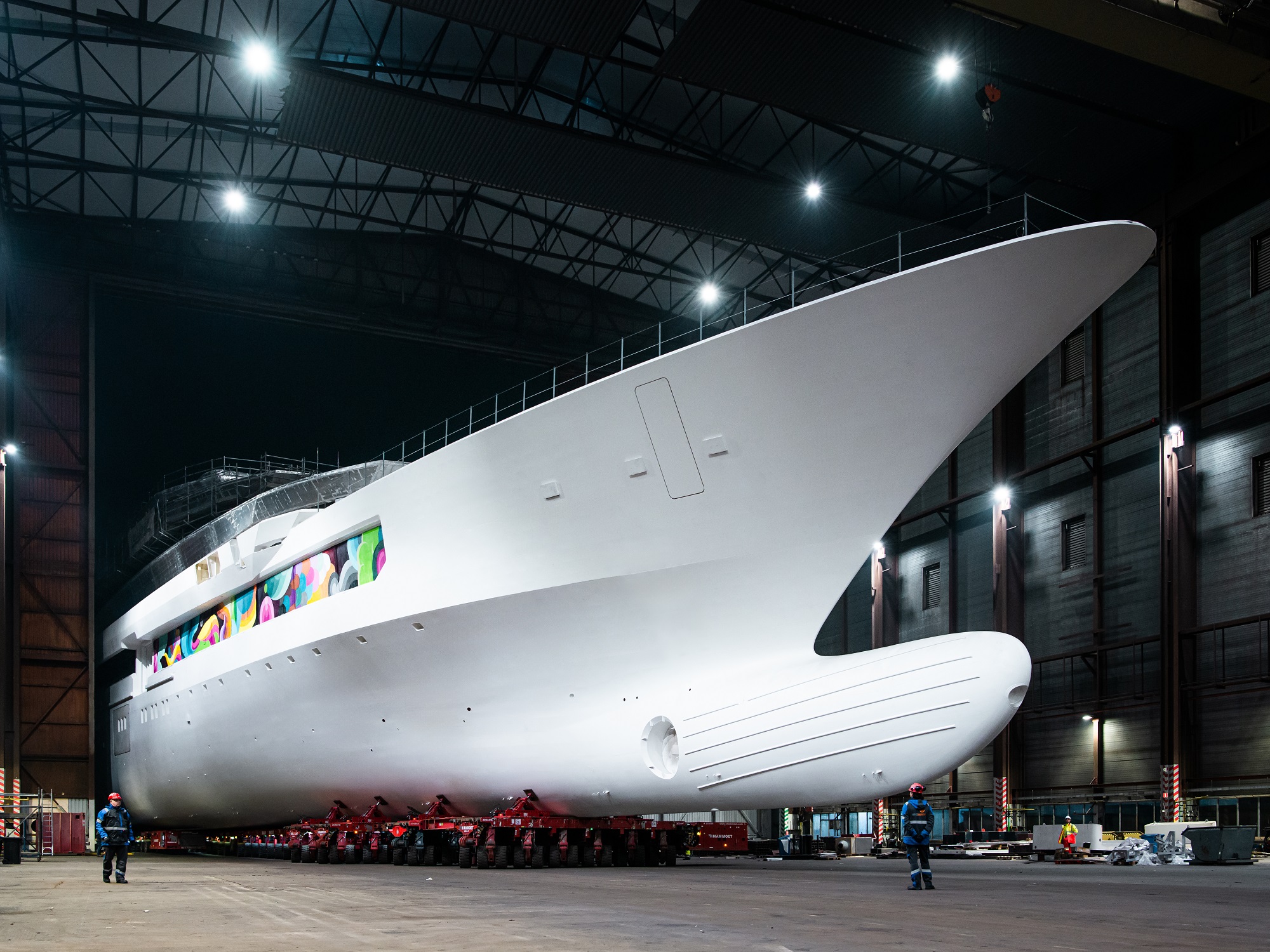 Once inside there is a cinema lounge, gym, spa with sauna and steam room and a beach club lounge bar opening directly onto the swimming platform. The yacht’s interior will benefit from spectacular views, courtesy of large windows that have been integrated throughout.