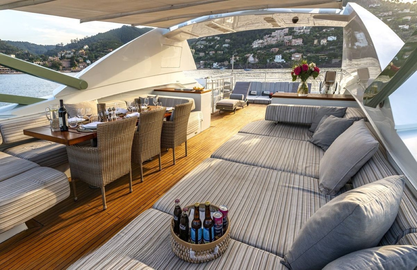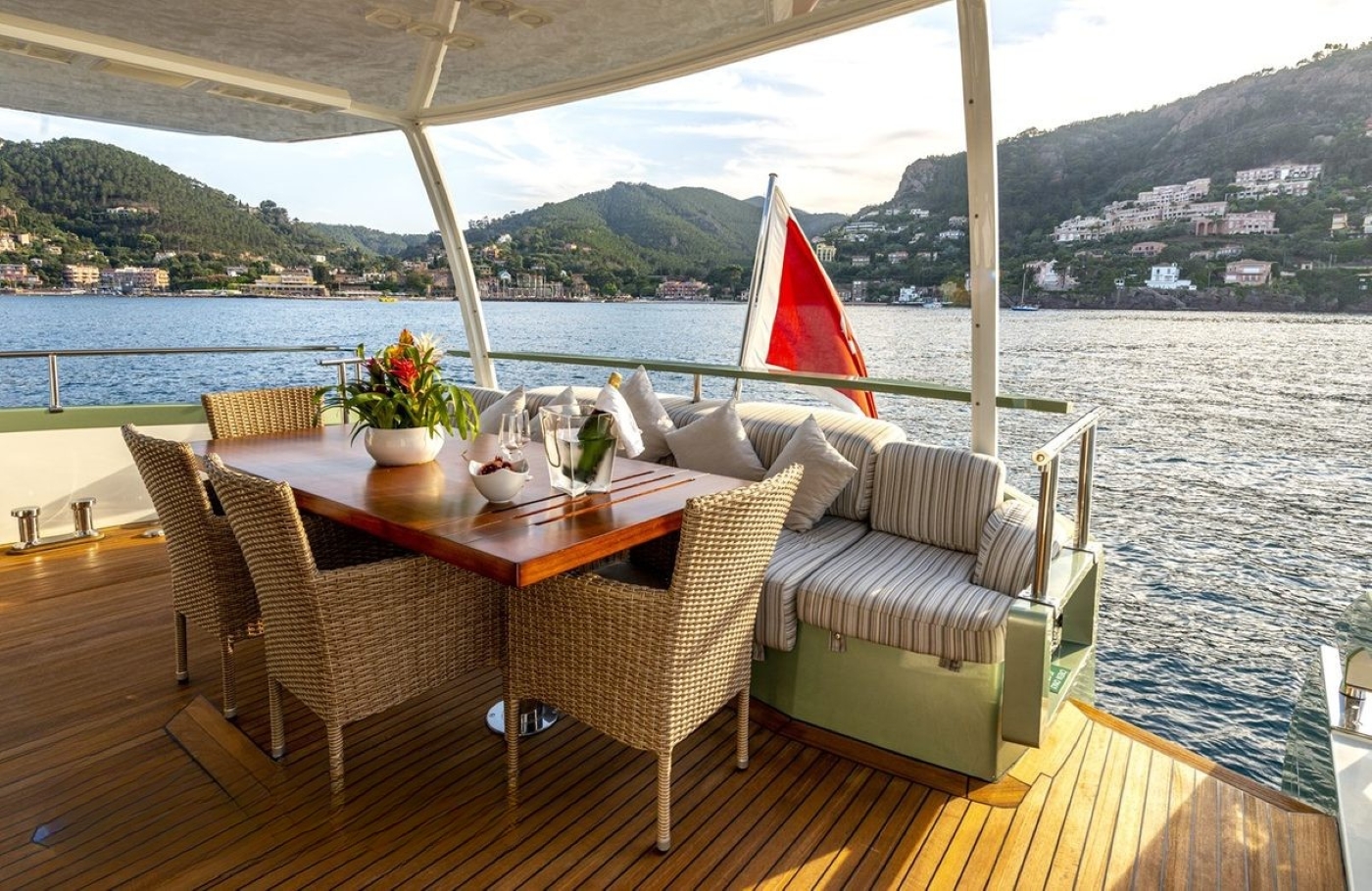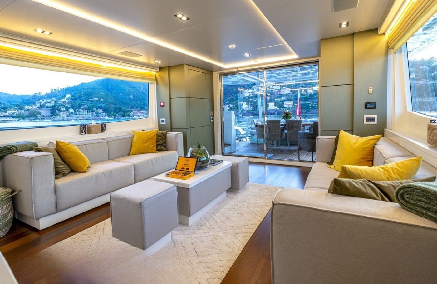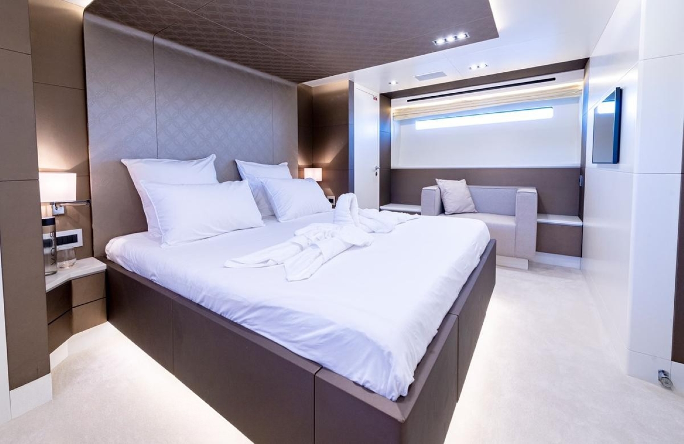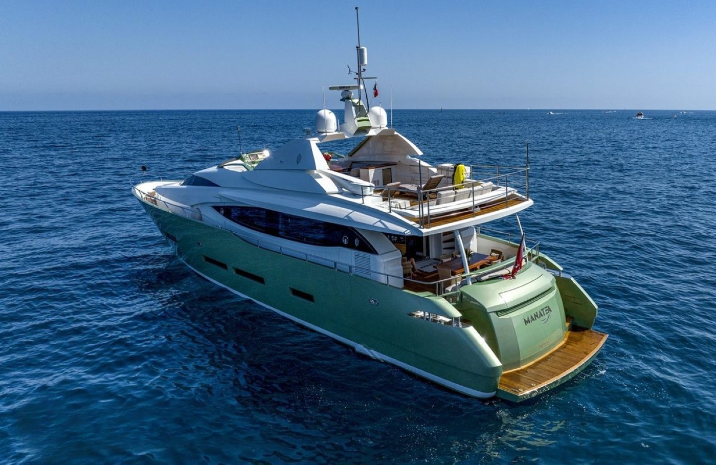 MANATEA offers clean and modern lines and with 2 x MTU 1500 hp she is able to cruise at a speed of 24 knots and approach a top speed of 30 knots.