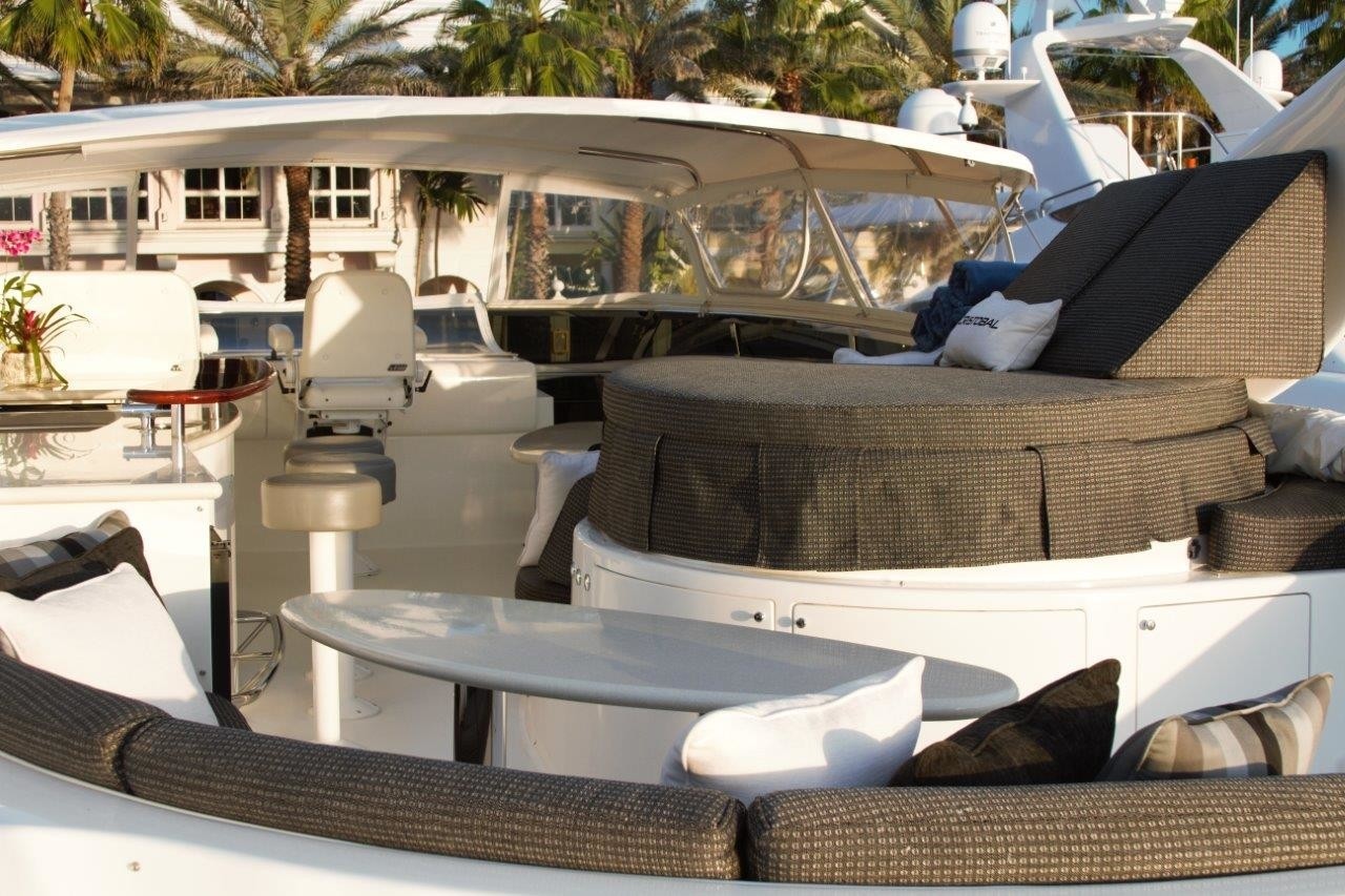 A luxury yacht charter in Florida and the Bahamas is ideal for those who wish to enjoy the sunny climates and balmy blue waters. There is great exterior living on two decks. The main salon flows out onto the shaded aft deck, where an alfresco dining option and further comfortable seating awaits. For the water enthusiasts, charter yacht SWEETWATER has an extended full beam swim platform, making water access effortless to enjoy the water toys on offer, which includes one wave runner. The main deck wraps around the yacht 360° leading to a spacious foredeck and built in double sun pad. Above, the flybridge is complemented by an alfresco dining option, additional seating, sun pad, partial shade, deluxe Jacuzzi and complete wet bar.