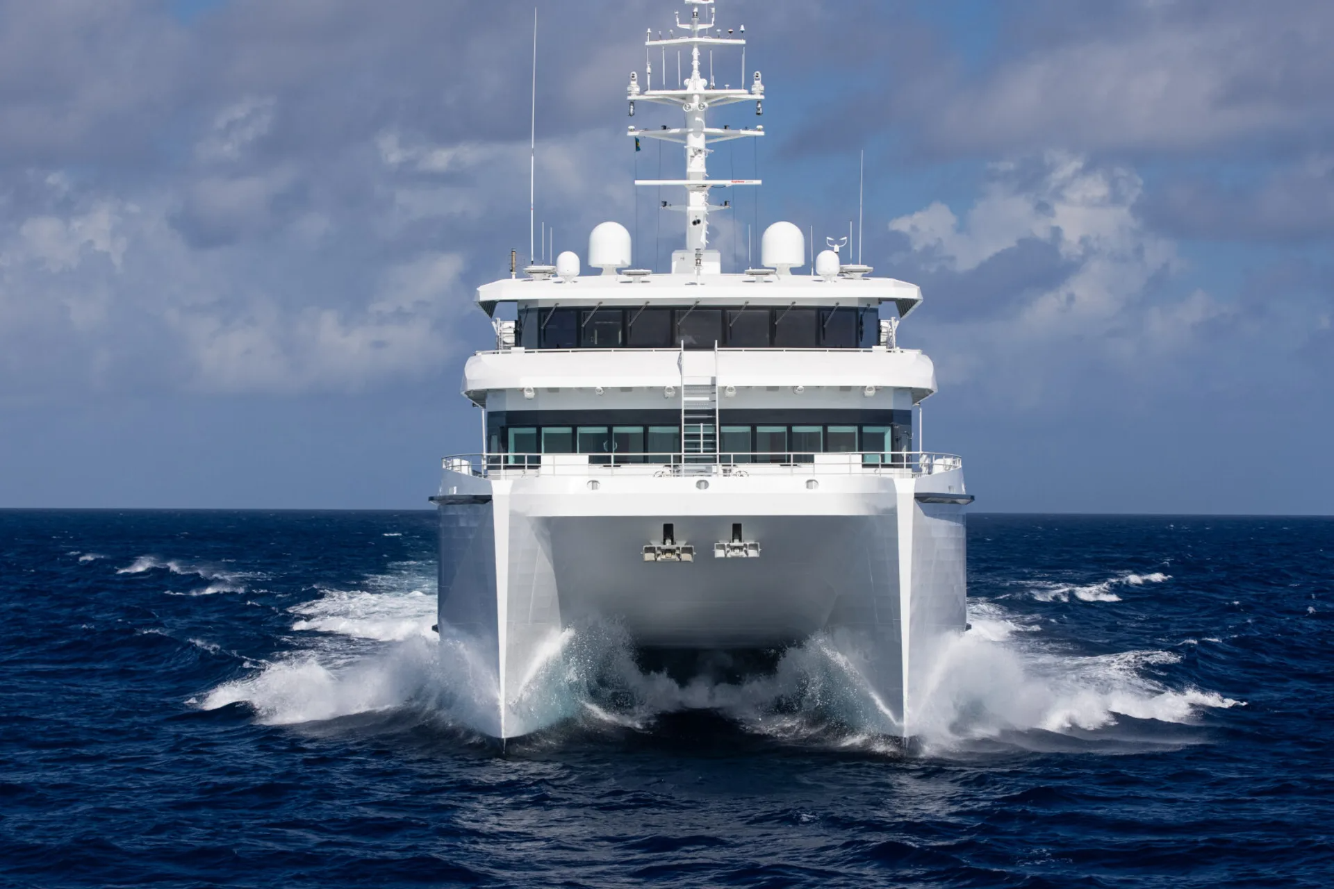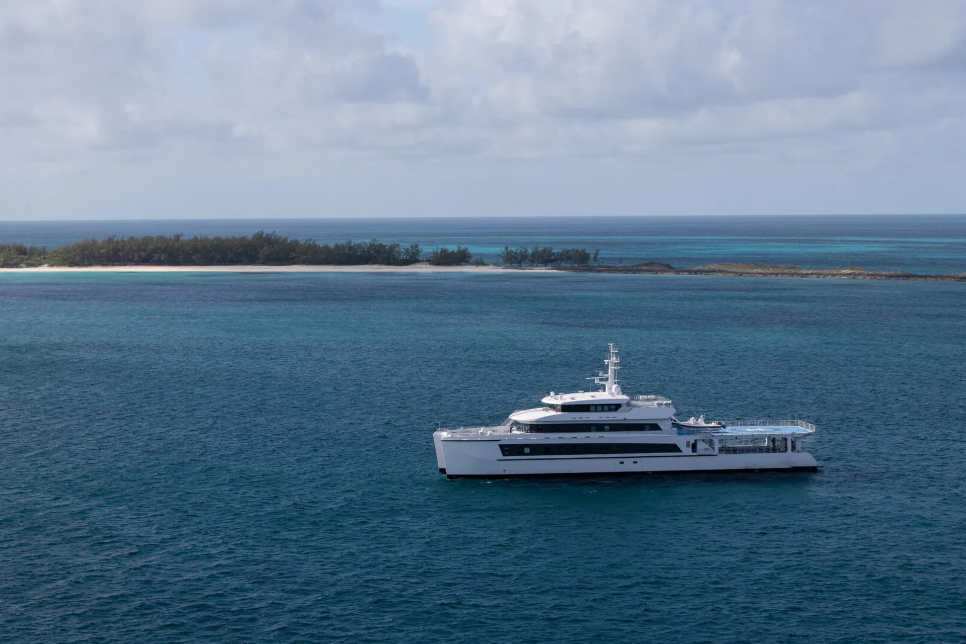 NOTABLE FEATURES OF WAYFINDER: ~Helipad and hangar ~Maintenance workshop on board ~All-aluminium for a shallow draft ~Large food, water and fuel storage ~Extensive on-deck storage for water toys