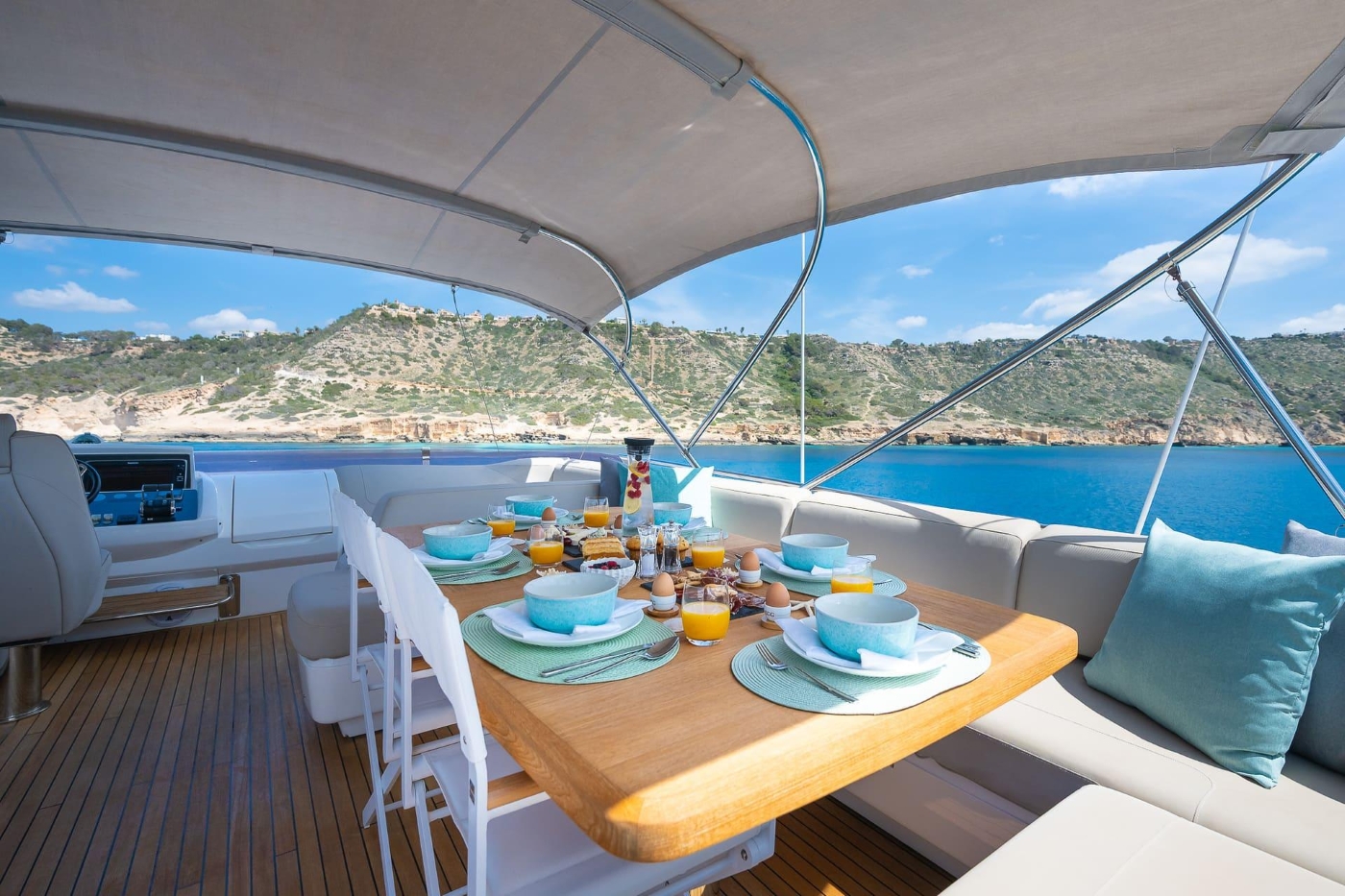Built by Princess Yachts in 2015, the 21.25 metre motor yacht ZEN is a sleek and contemporary vessel that combines performance, style and comfort in equal measure. She presents bright and inviting interiors, generous outdoor living spaces, and accommodates up to eight guests with a crew of two — making her a refined choice for those seeking elegant, relaxed cruising around the Balearic Islands.
