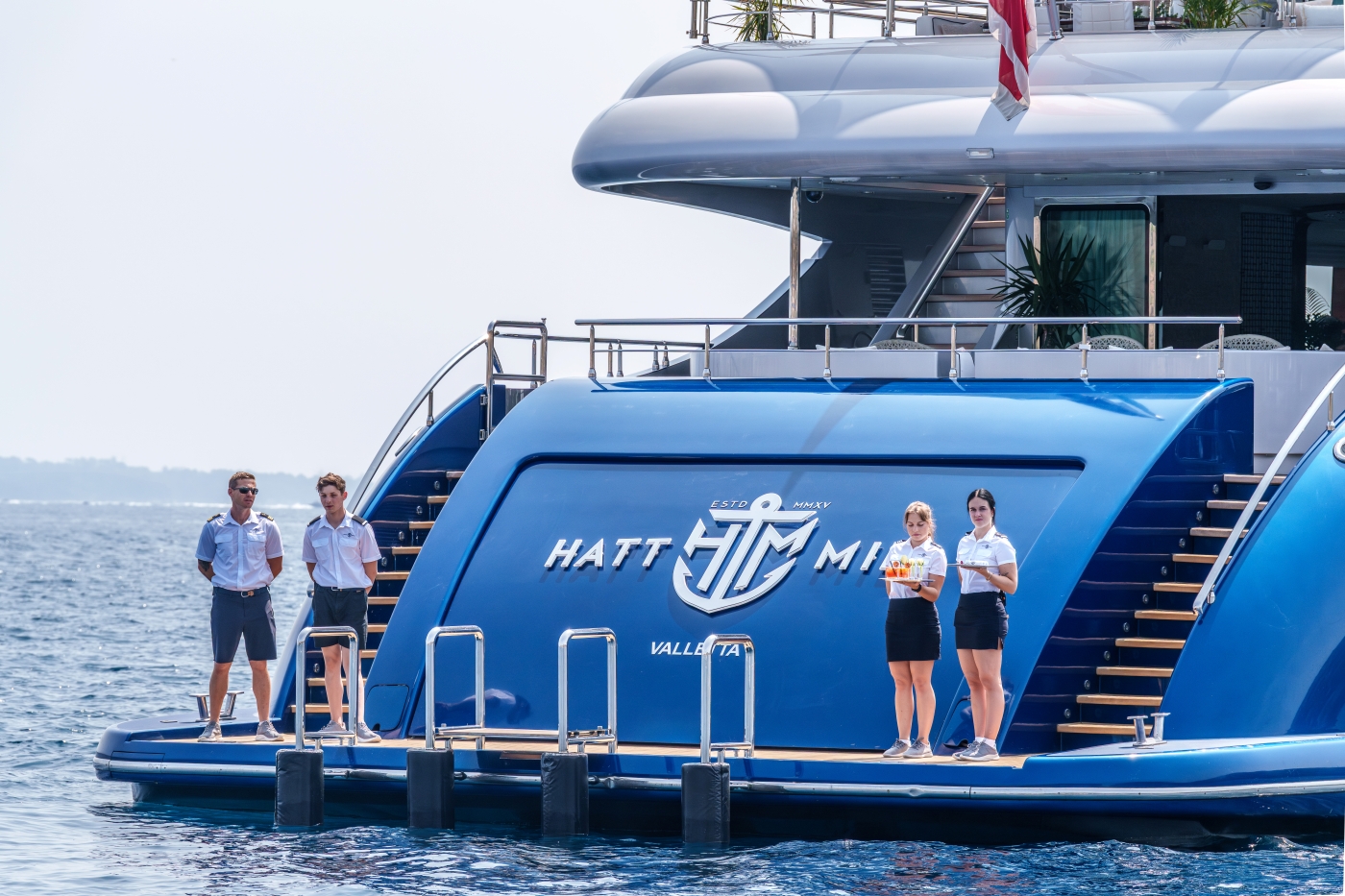 Aft Image Gallery from Yacht Baia 78 Aft Deck to Aft Deck Eating/dining On Yacht QM OF LONDON