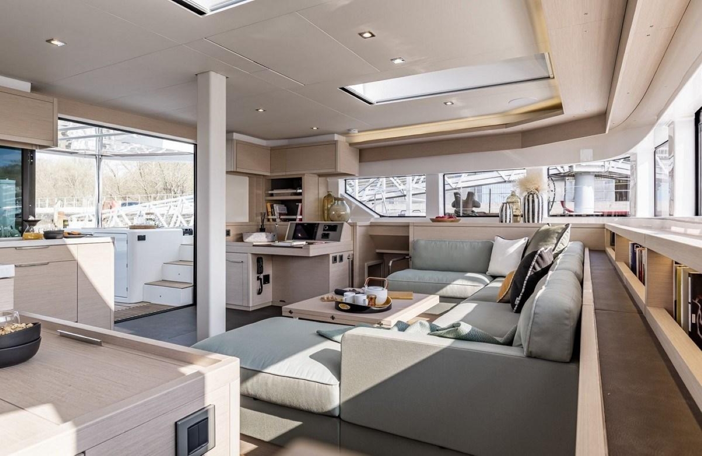 Lagoon Image Gallery from Main salon with dining set up to Cat AD ASTRA - Twin Cabin 2