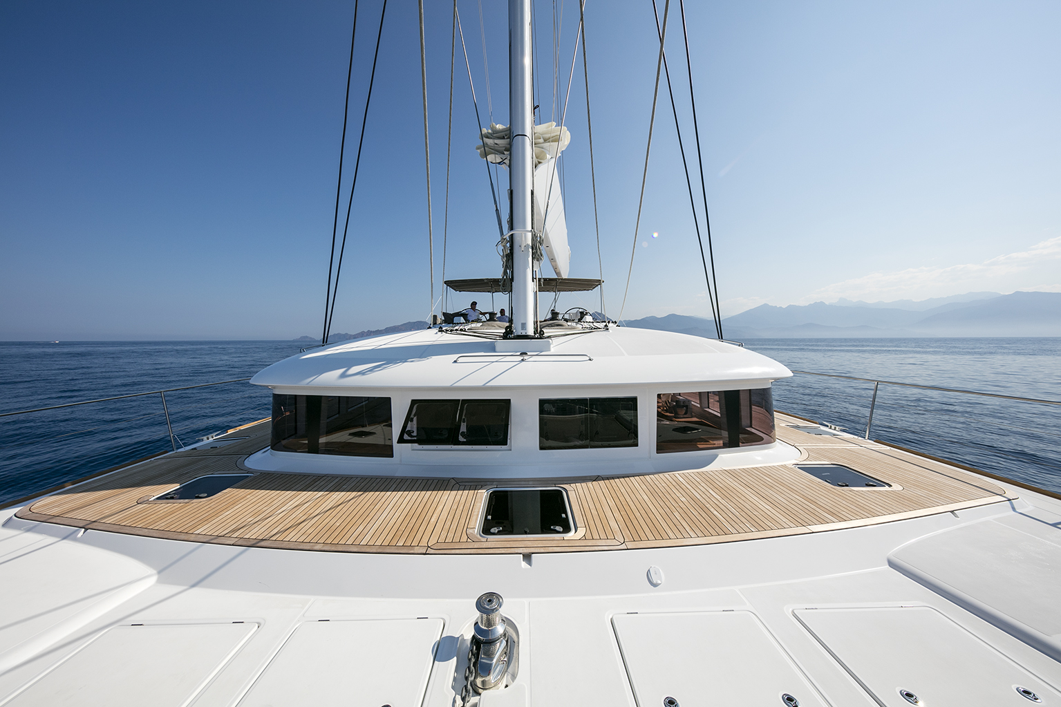 For sunlovers, the foredeck is the perfect spot, boasting 2 large safety trampolines. The upper flybridge features 2 large sunpads, comfortable seating, 2 helm stations and optional shade.