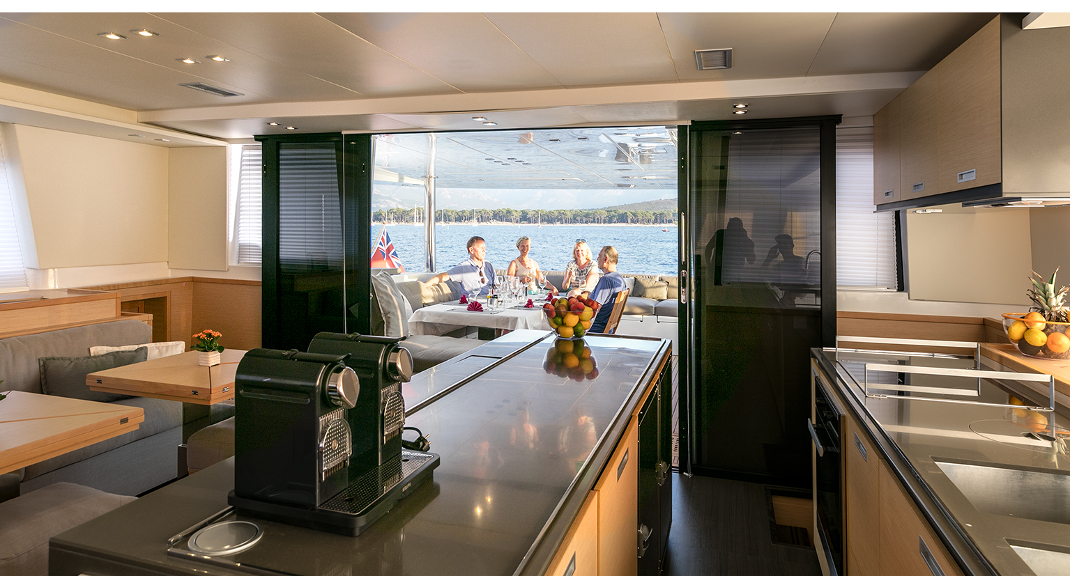 Lagoon sailing yacht TWIN offers luxury crewed yacht charters boasting accommodation for up to 8 guests, in 4 spacious en-suite cabins.