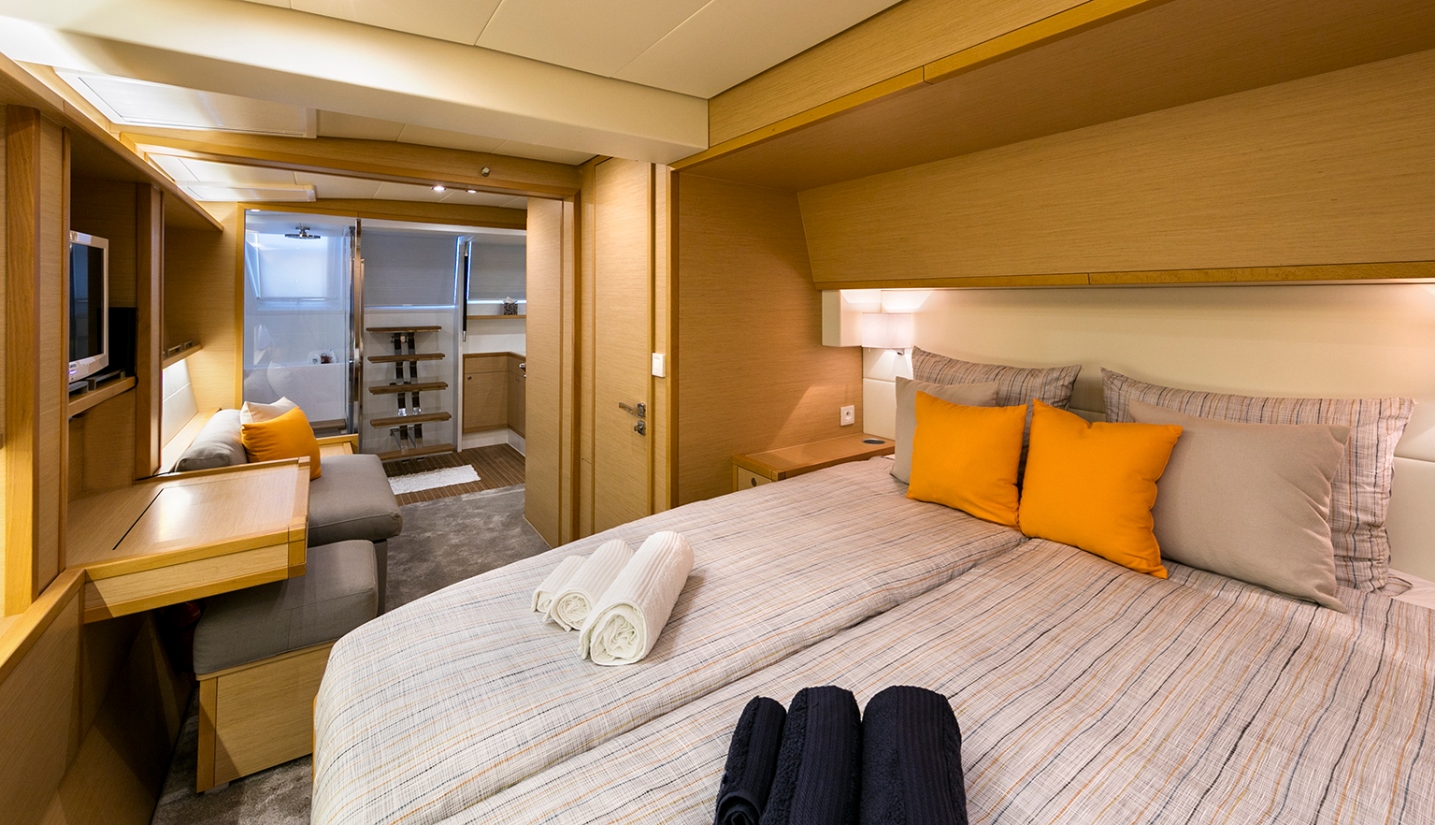 Lagoon sailing yacht TWIN offers luxury crewed yacht charters boasting accommodation for up to 8 guests, in 4 spacious en-suite cabins.