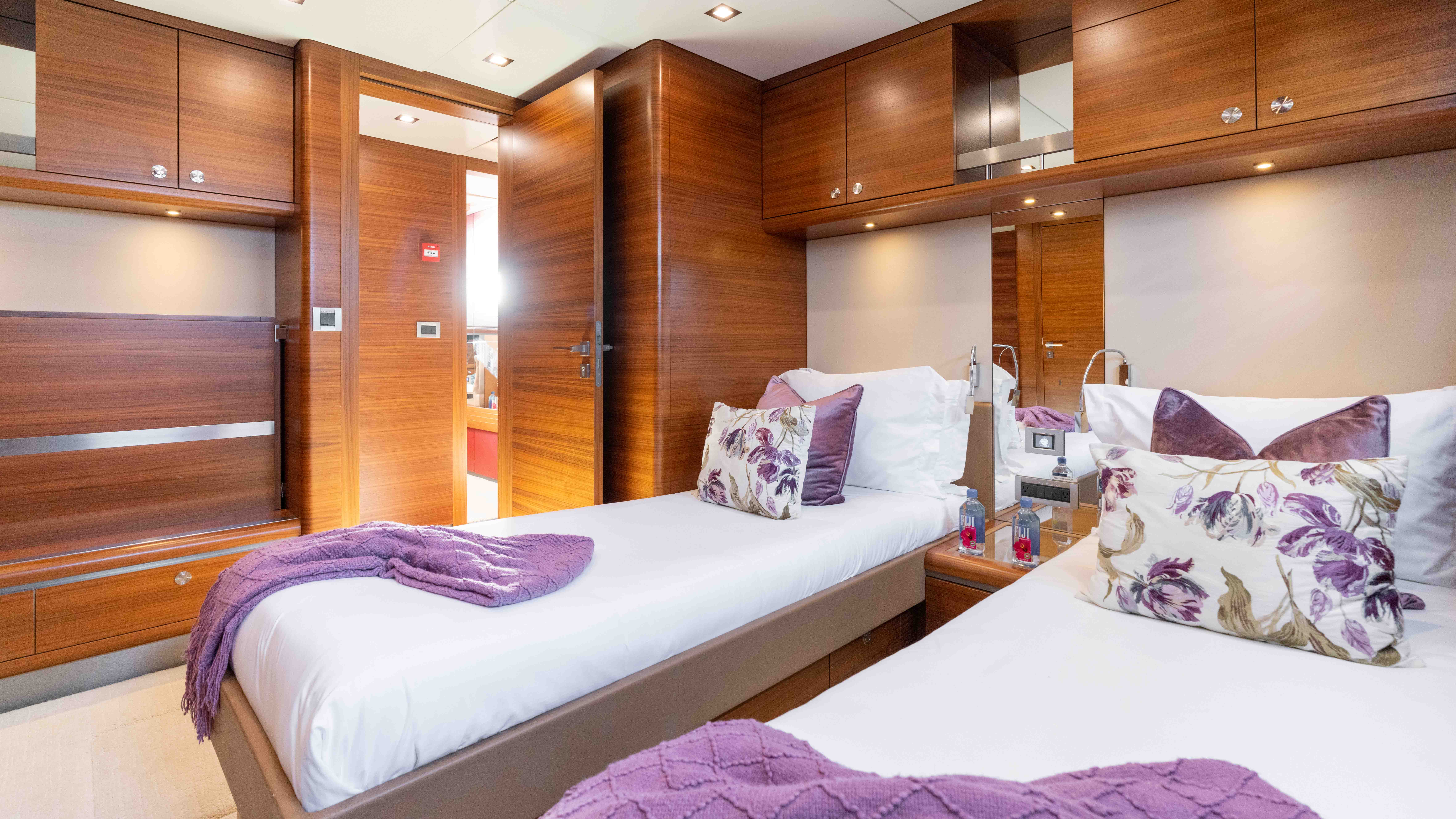 The suites include one master suite, one VIP suite, one King cabin and two twin cabins with additional Pullman berths.