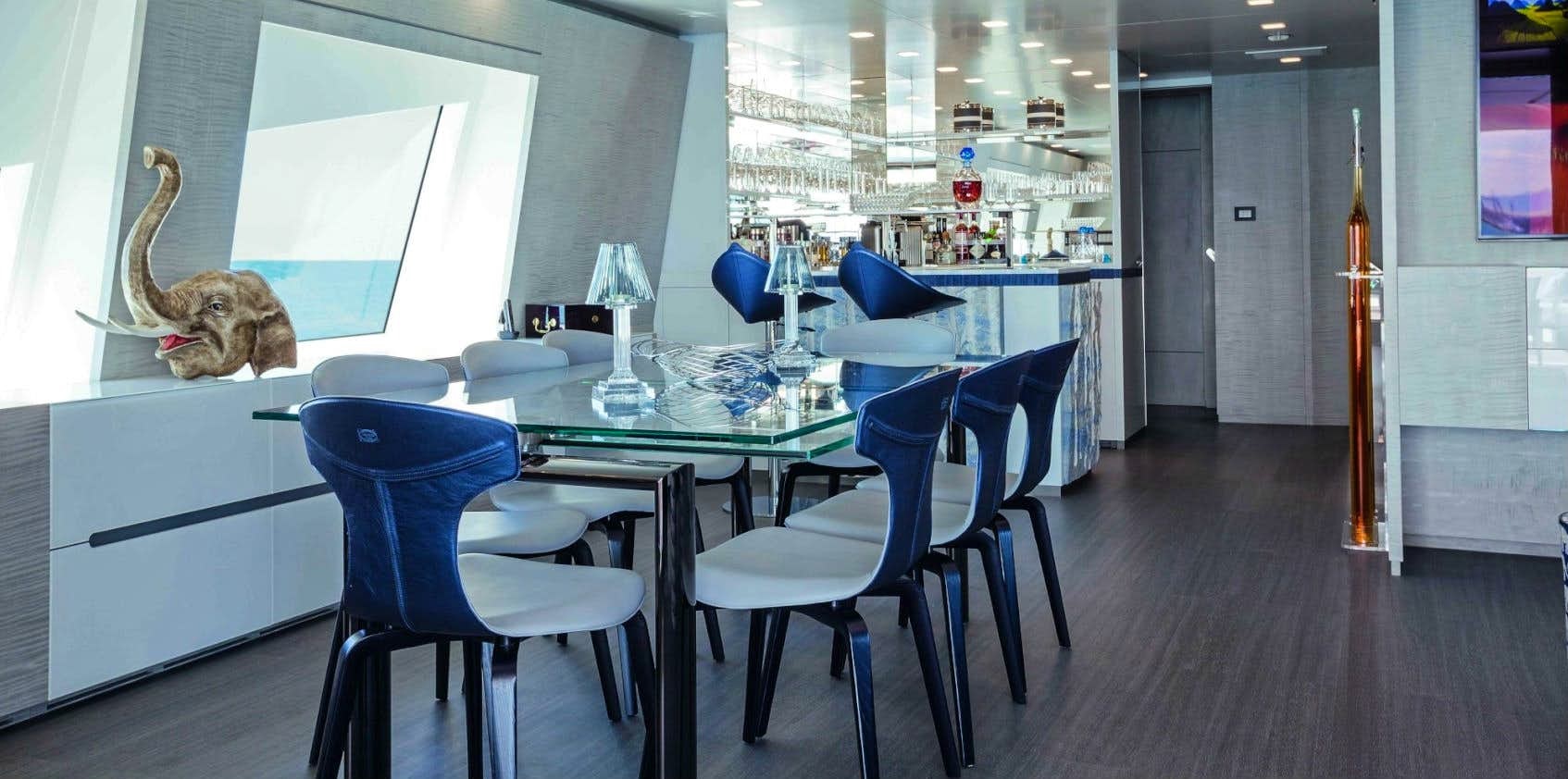 After a day on the water, enjoy a movie in the main salon’s oversized cinema chairs or relish formal dining in the skylounge.