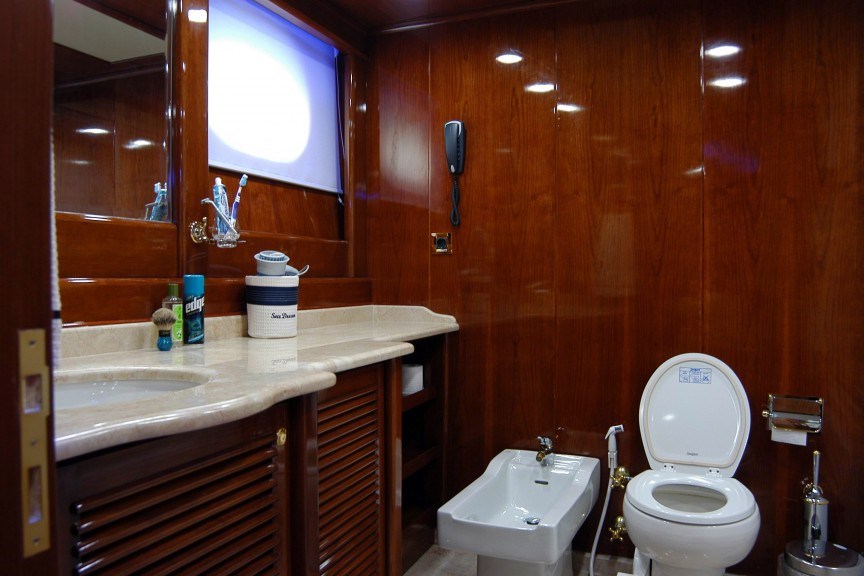 Luxury charter yacht SEA DREAM can accommodate up to 10 guests, in 5 cabins. All guest cabins are en-suite and fully air conditioned. The master cabin is aft and full beam of the yacht, with a center lined queen size bed and sofa.