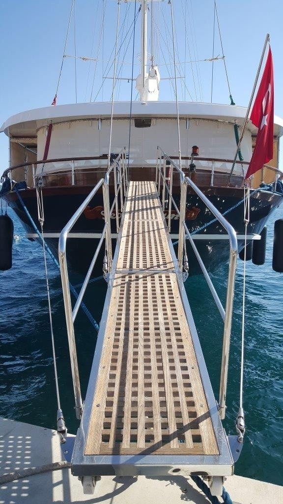 The Aegean Yacht sailing gulet SEA DREAM is powered by 2 x MAN 675hp engines, with speeds of 11 – 12 knots underway. The yacht has a ketch rig and draft of 3,9m (12,7ft).