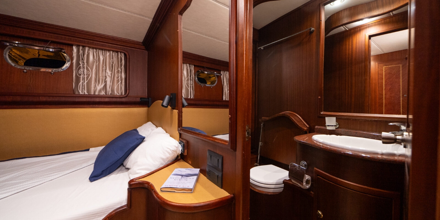 S/Y ALBA offers generous accommodation for up to 10 charter guests, in 5 en-suite cabins.