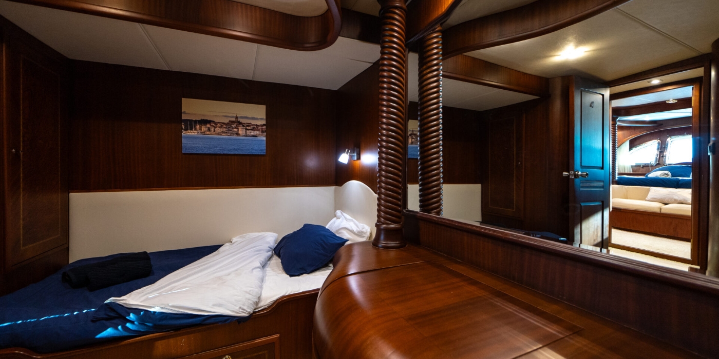 S/Y ALBA offers generous accommodation for up to 10 charter guests, in 5 en-suite cabins.