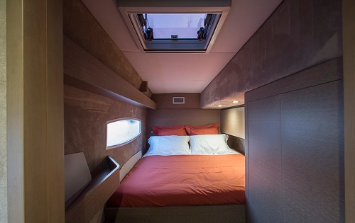 She was designed by Michel Joubert while Bernard Nivelt was responsible for her naval architecture and can offer overnight sleep for up to eight guests in four cabins. There is a crew of four on board.